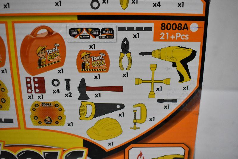 Kids Toy Tool Set 21 Pieces Durable Tool Box with Electric Drill, Hammer, Hat and More,Toddler STEM Toys. Black marks on Helmet, otherwise new & complete