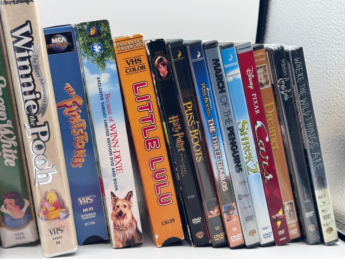 Lot of children’s movies and sing-alongs; some still factory sealed.