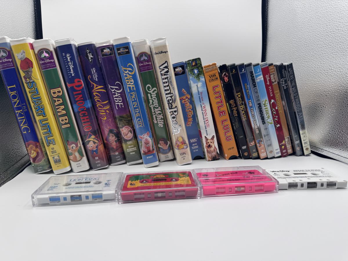 Lot of children’s movies and sing-alongs; some still factory sealed.