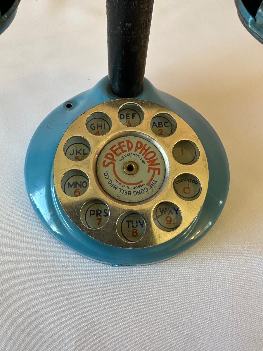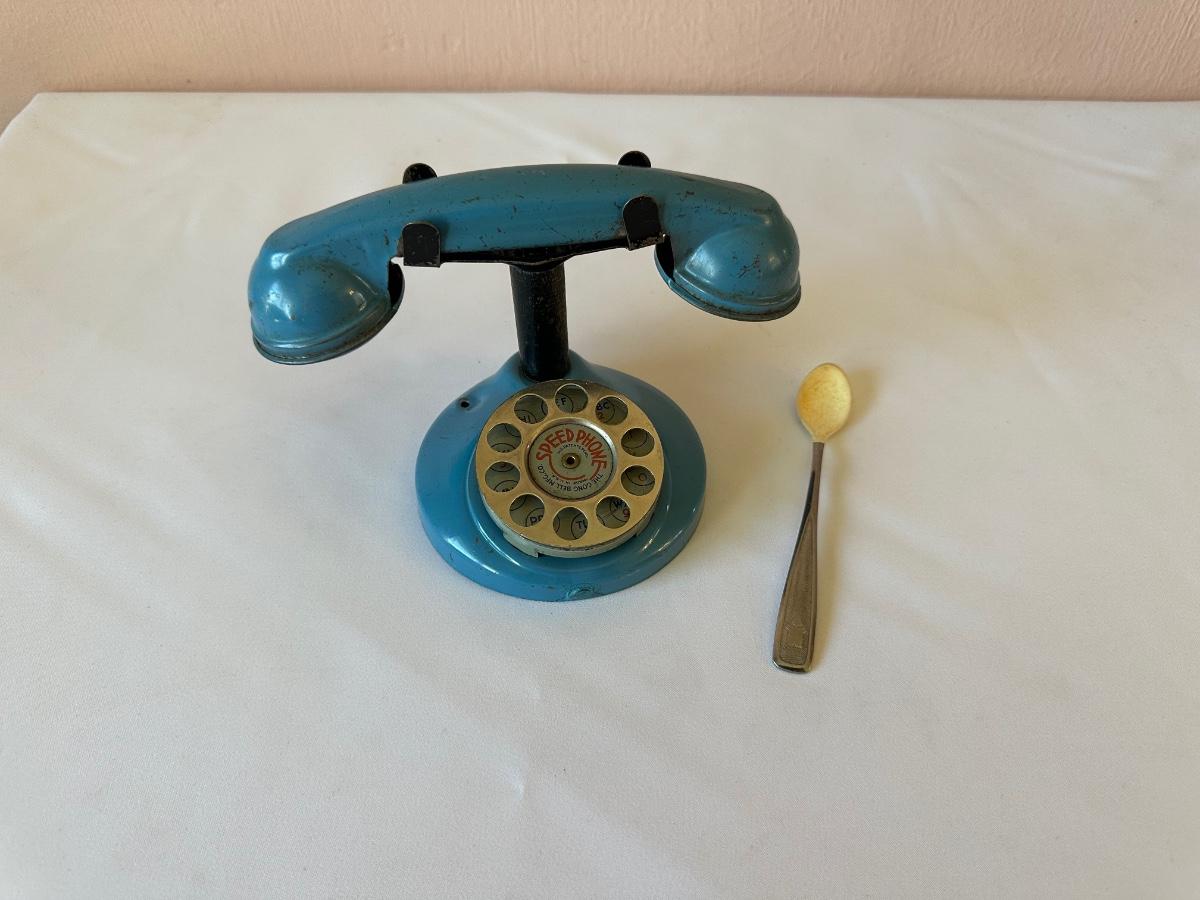 KIDS VINTAGE METAL “SPEED PHONE” BY THE GONG BELL AND BABY SPOON