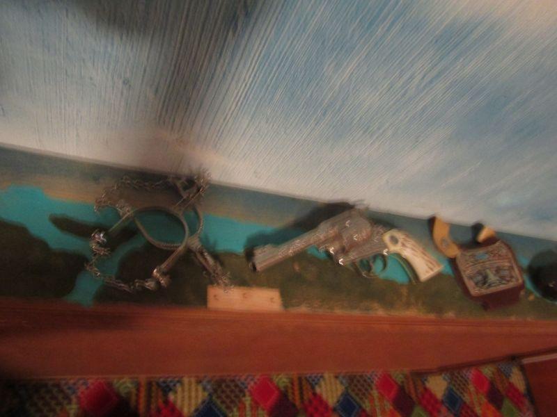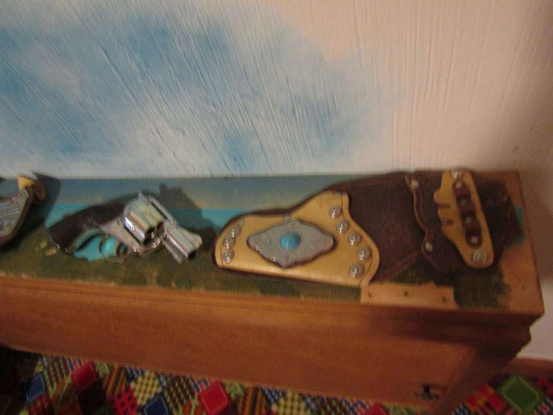 LOT 128  KIDS VINTAGE TIN DISHES & CAP GUNS