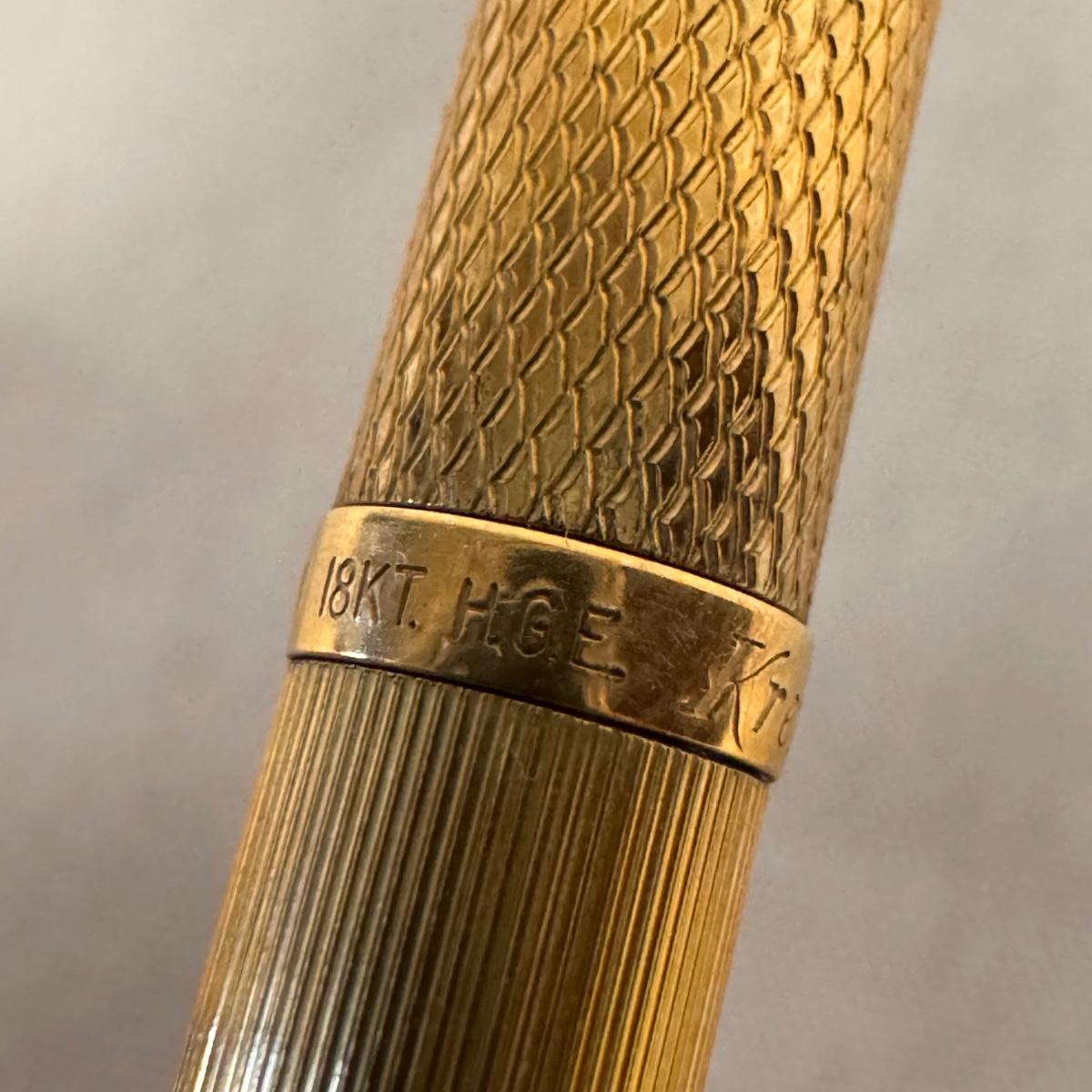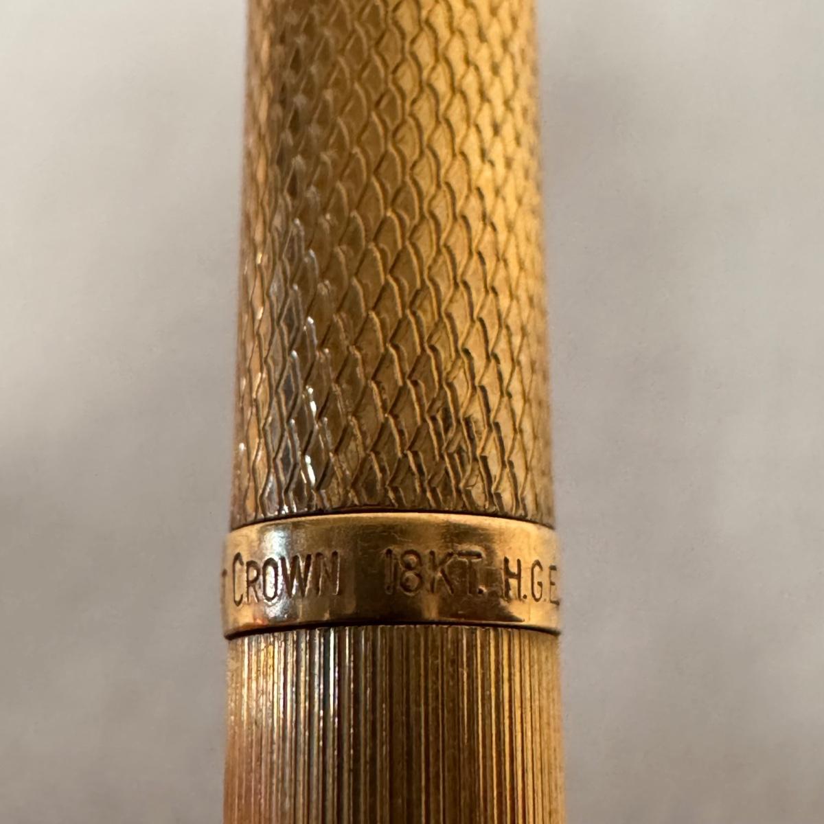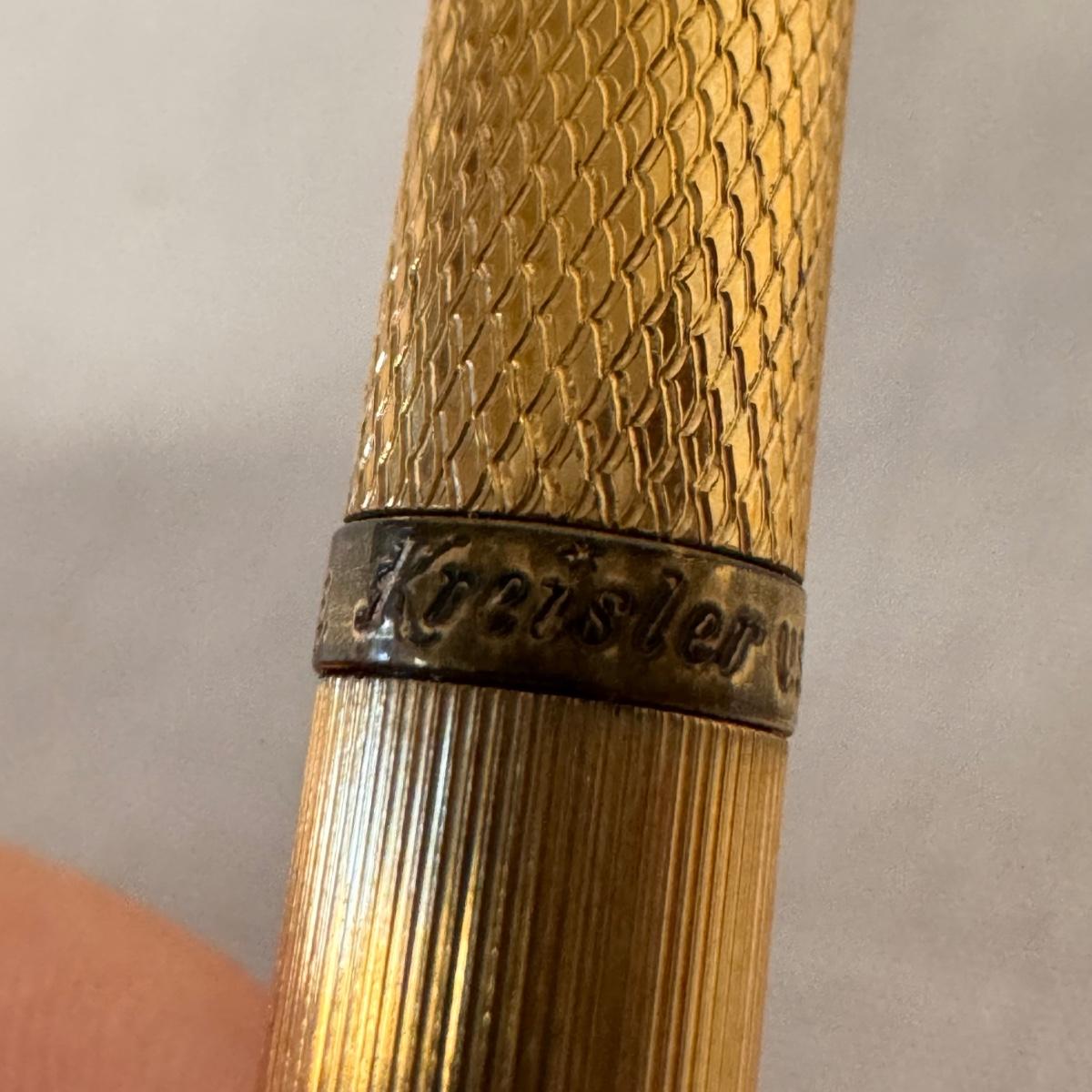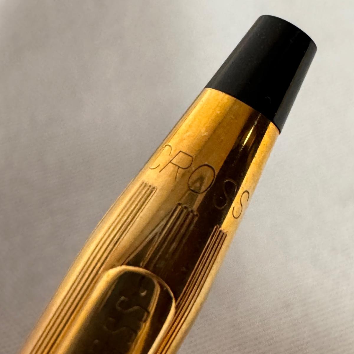 This lot includes one Kiesler pen and one Kiesler pencil. Both are marked with 18K H.G.E. It also includes one Cross pen and one Cross pencil - both are marked with 1/20 12kt gold. Shipping available.