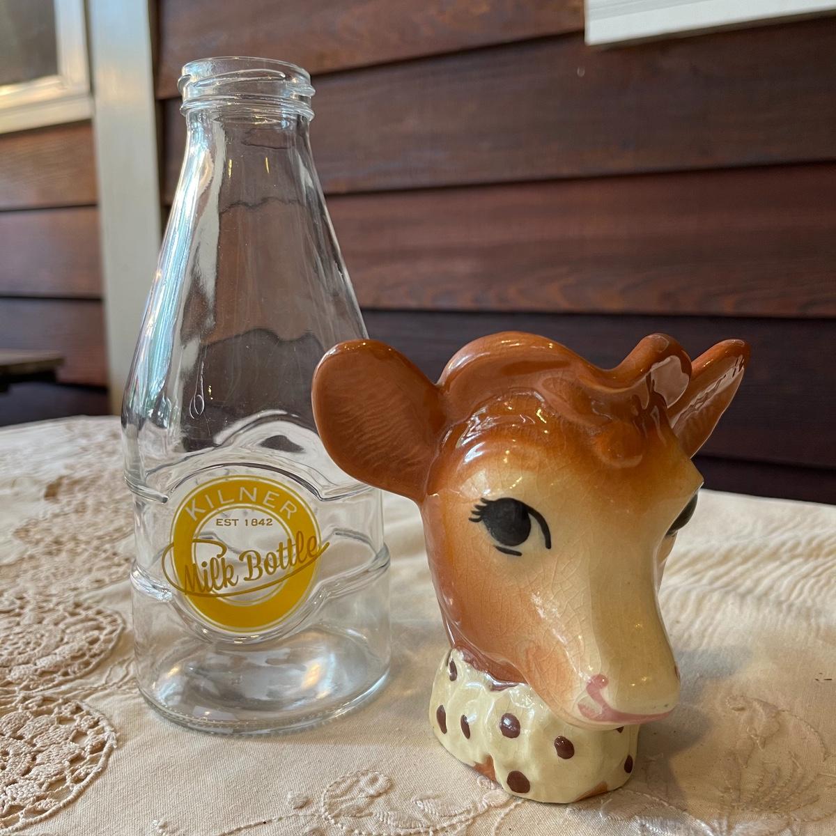 Vintage KILNER MILK BOTTLE and Darling Cow Creamer