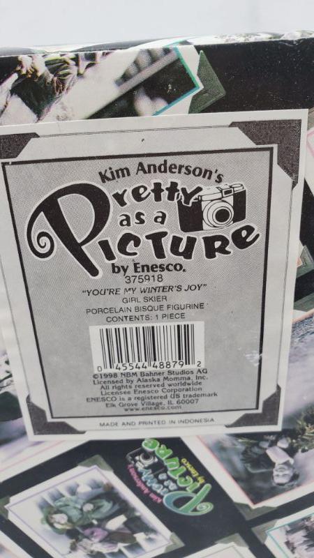 Pretty as a Picture by Kim Anderson, "You're My Winter's Joy" Statue, Girl Skier with Box