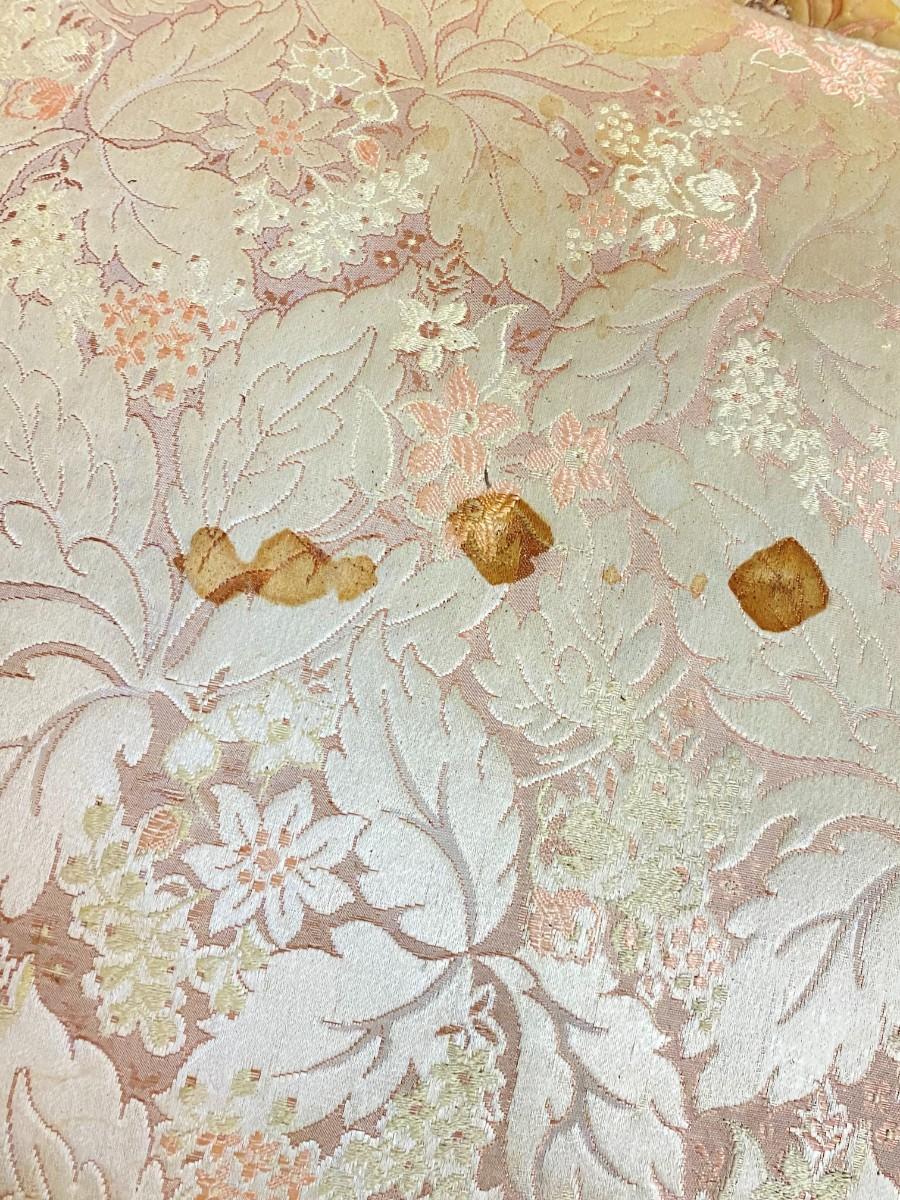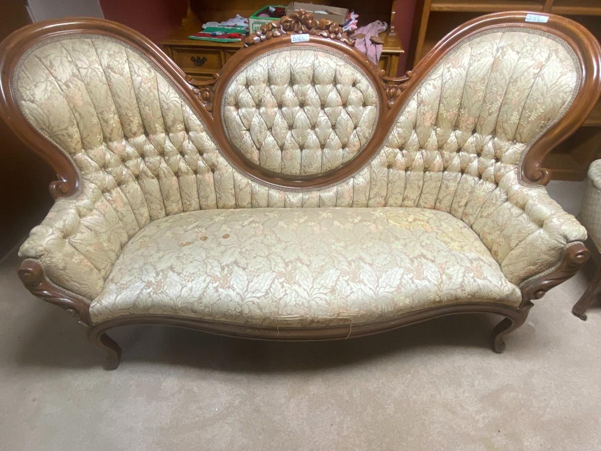 Lot 44 is only the sofa. It has some damage. (The sofa and chairs in Lots 43, 44 and 45 are a matched set).