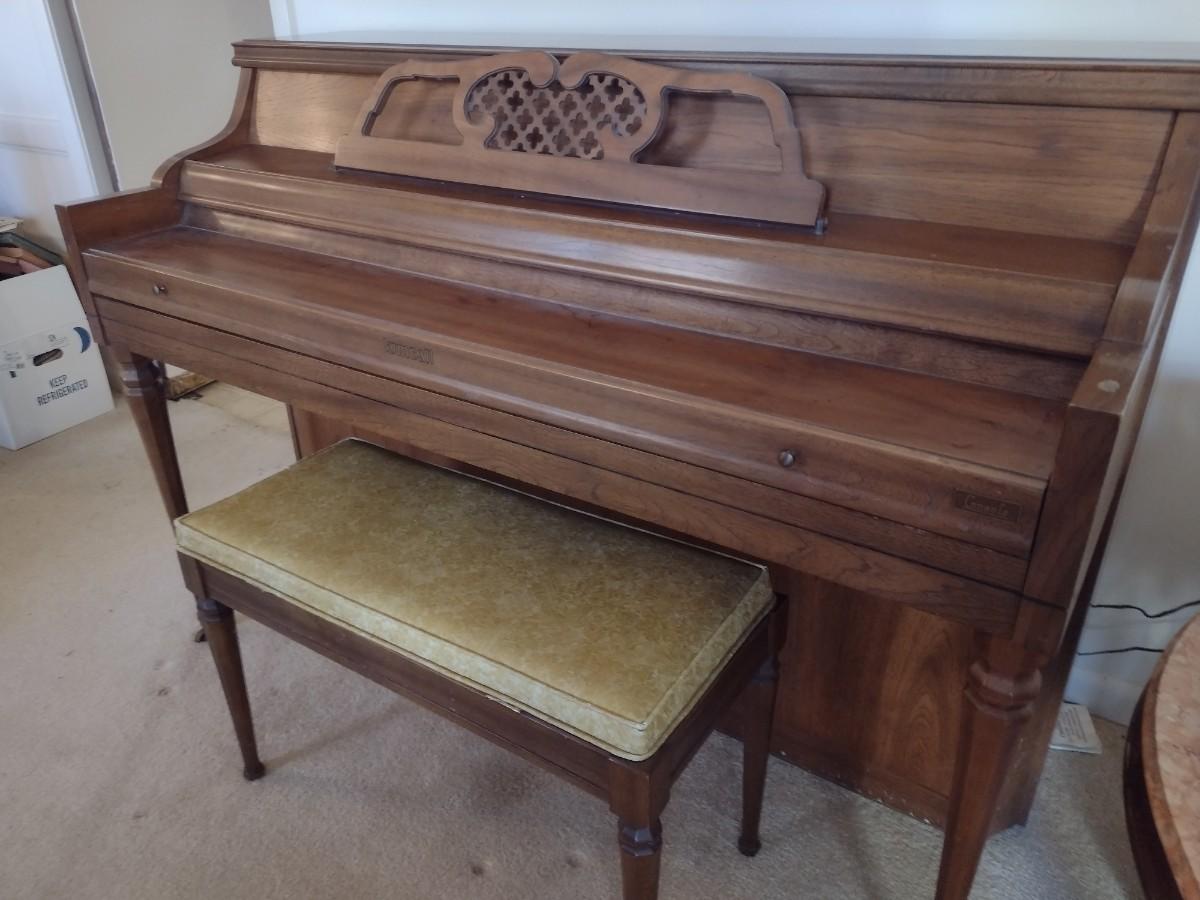 Kimball Upright Console Piano with Bench. No stairs. Ramp down to the driveway