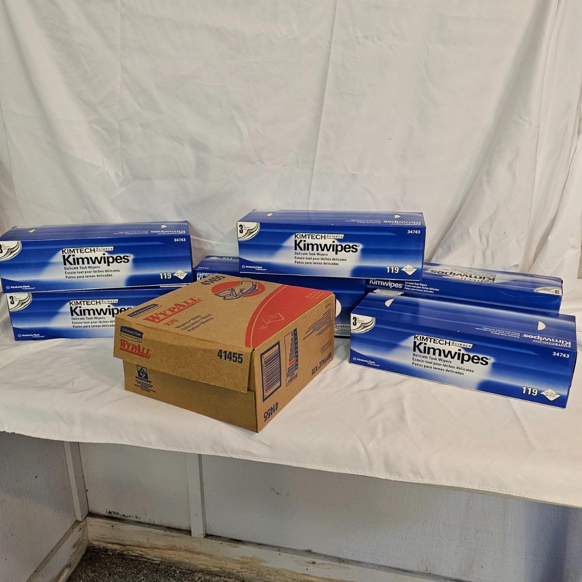Six boxes of Kimtech Kimwipes and one box Wypall wipes. All appear unopened. See photos for details. Shipping available.