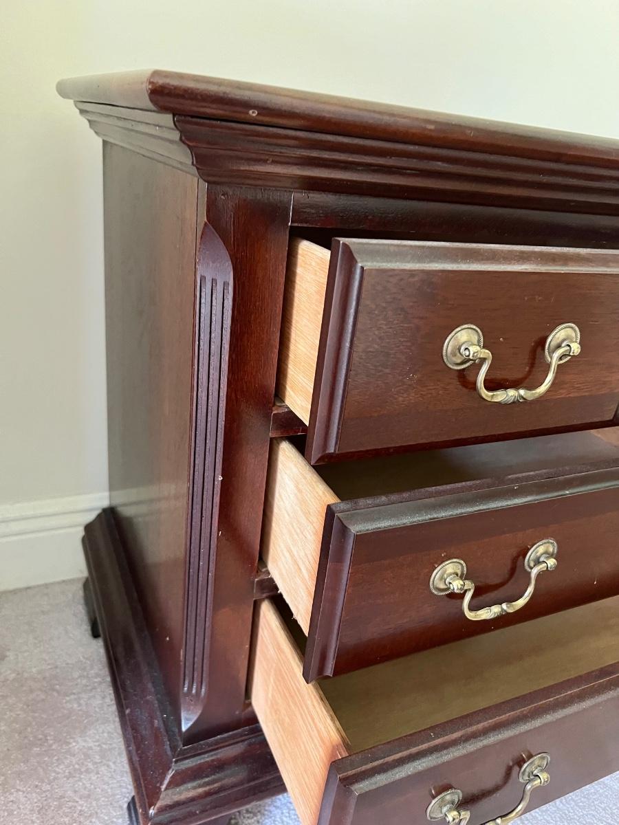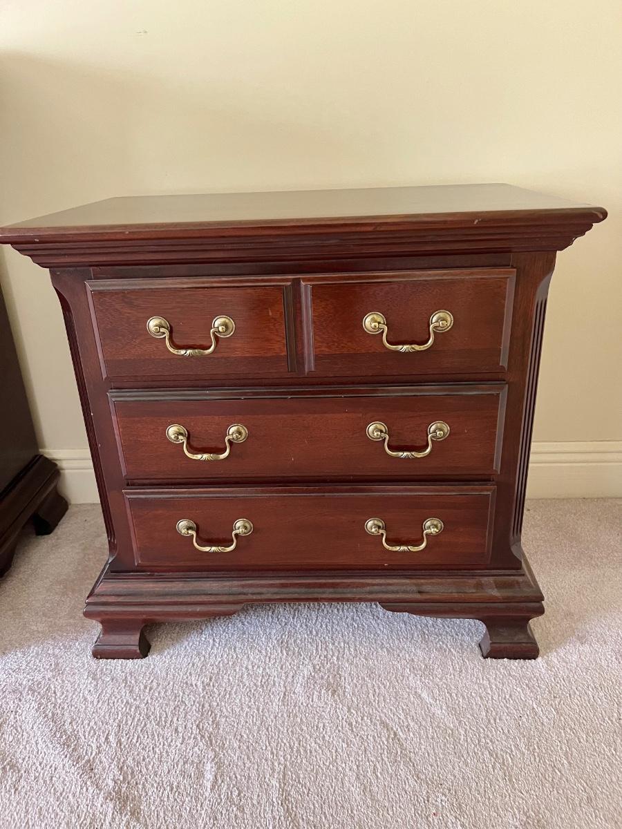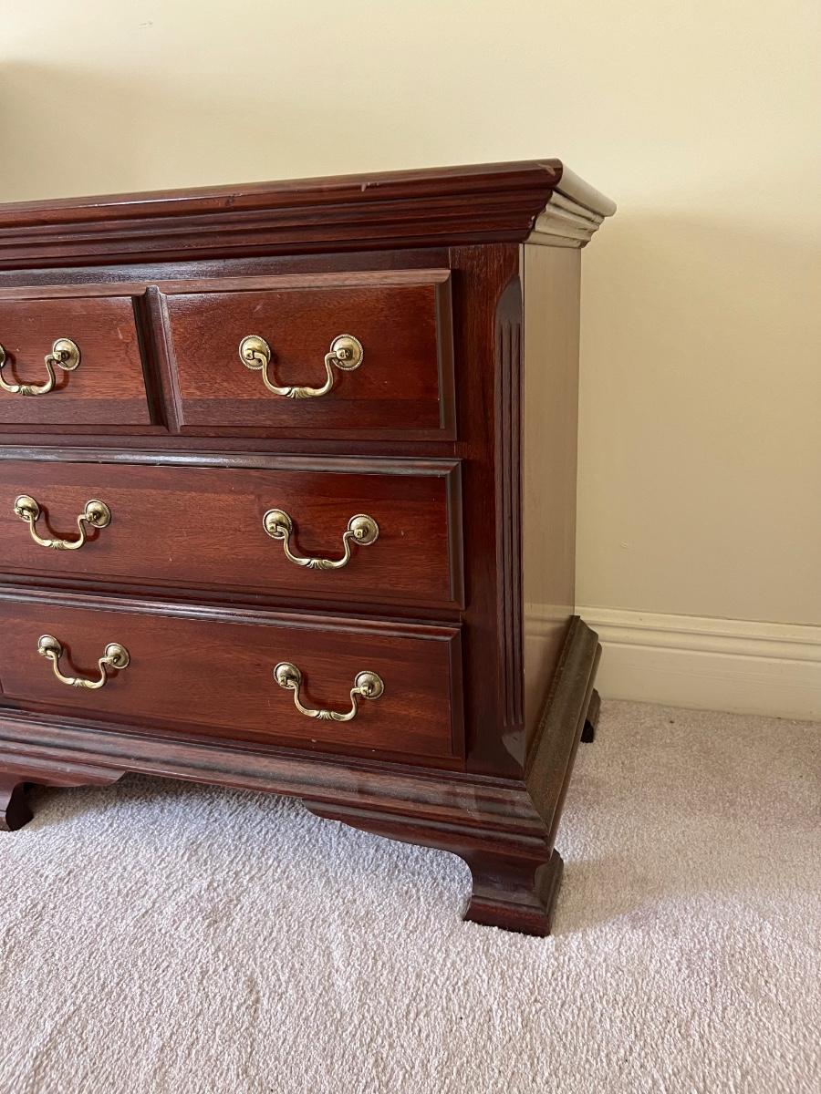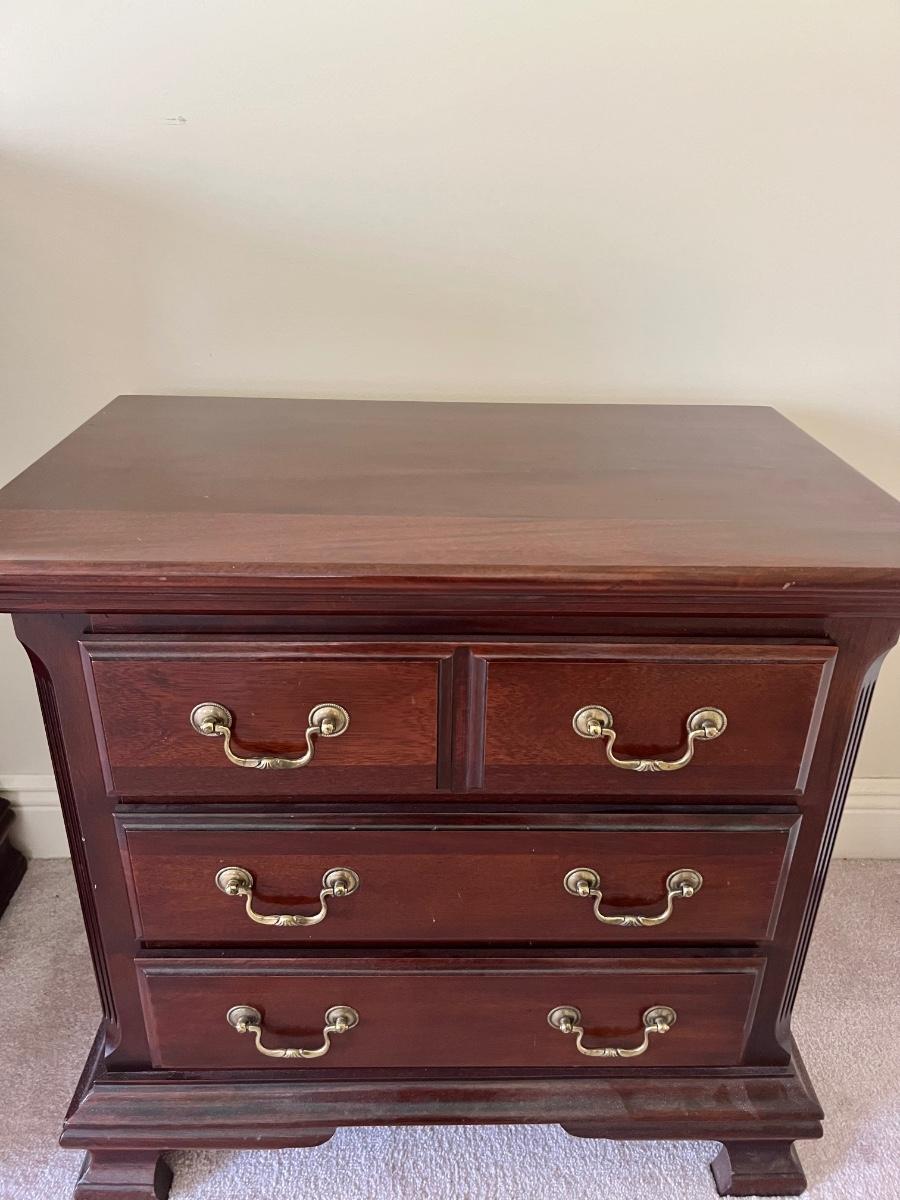 KINCAID Dresser & Night Stand 8 drawer KINCAID solid wood dresser and mirror. Dresser measures 34 inches tall, 58 inches long and 19 inches deep. Mirror measures 52 inches tall and 30 inches wide. Matching 3 drawer night stand. Nightstand measures 24 inches tall 26 inches wide and 16 inches deep.