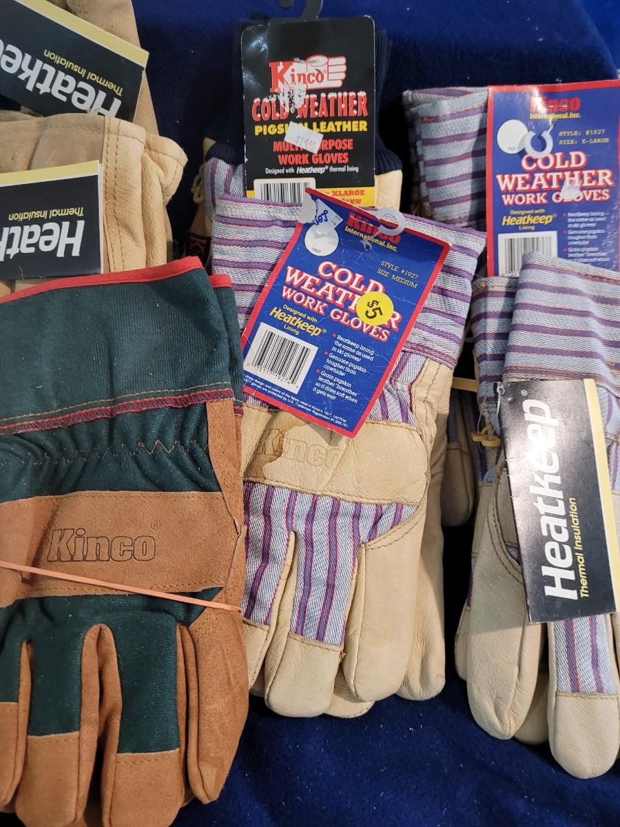 7pr Kinco Heatkeep work gloves. Various styles and sizes new but shelf worn
