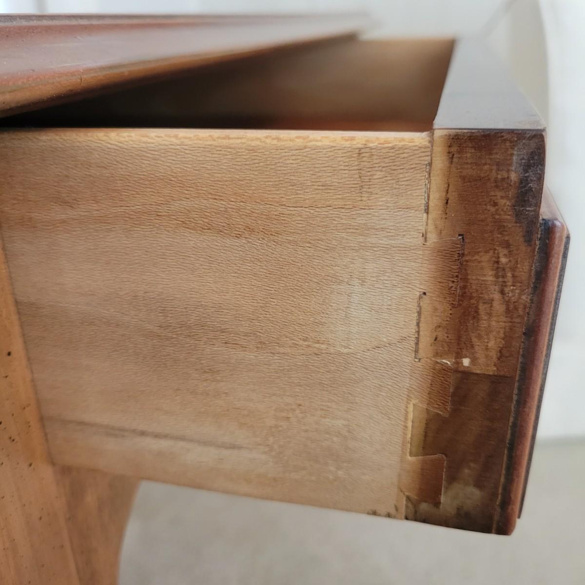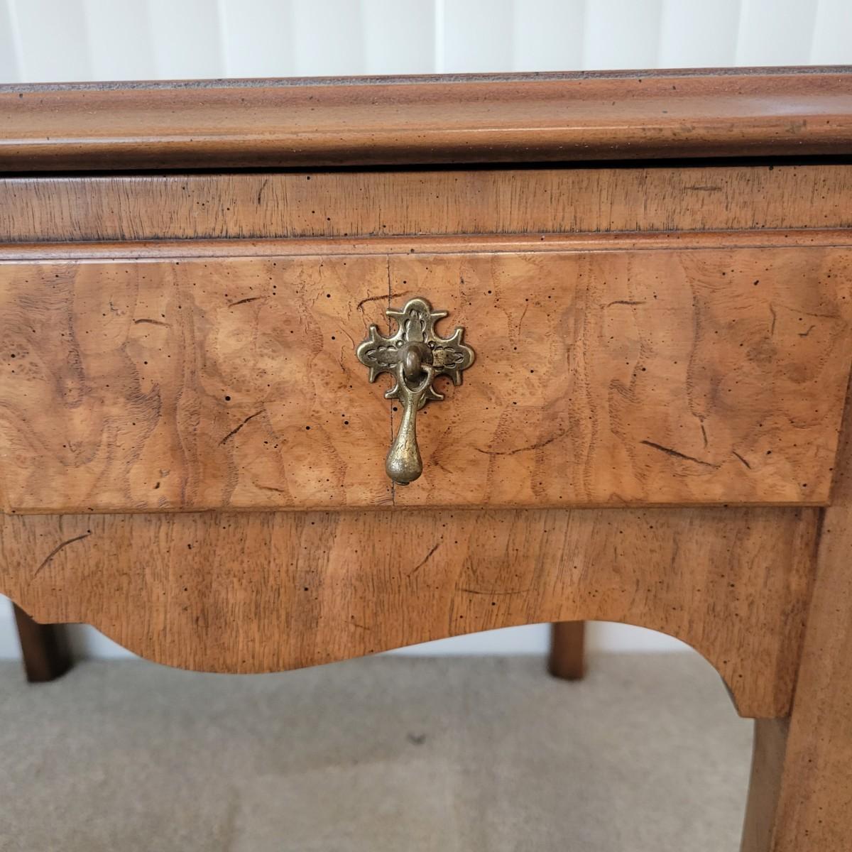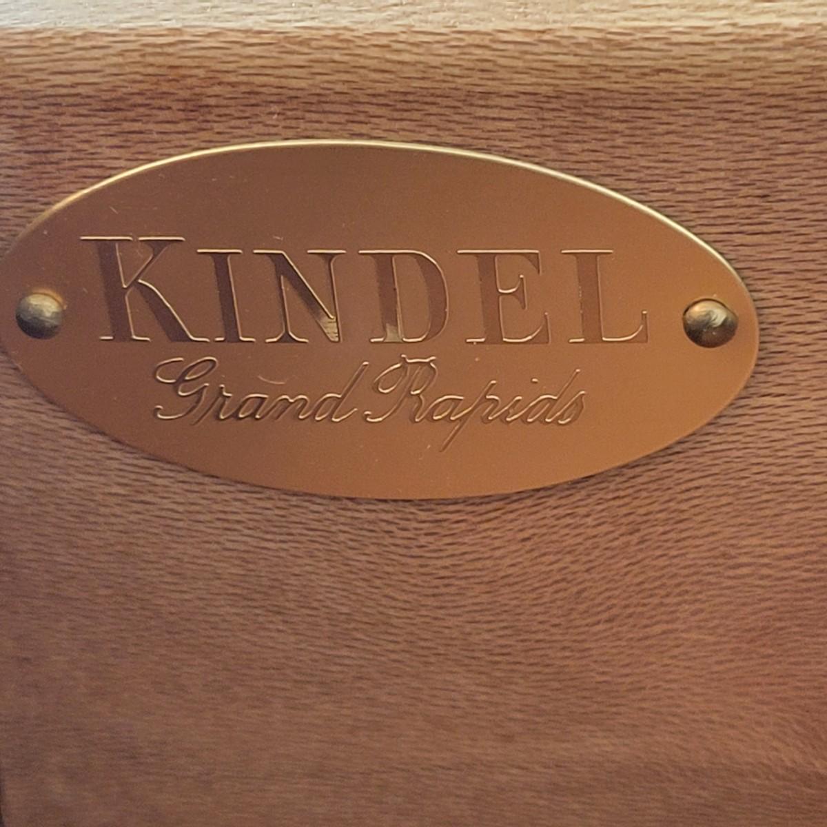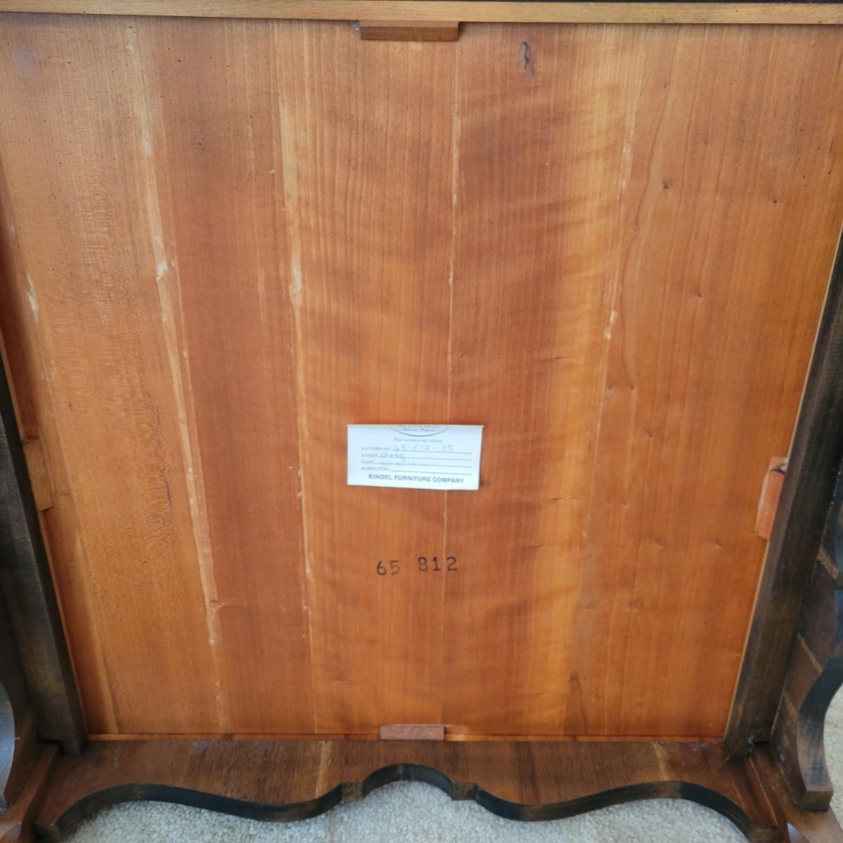A Kindel Furniture Co. solid wood side table. This table features two dovetailed drawers with brass hardware. It measures approximately 26" x 26" x 24.5"H. Local pickup only.