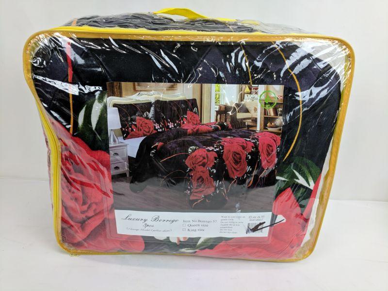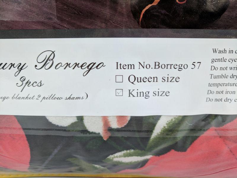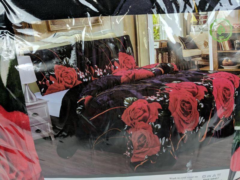 King 3 PC Set, Luxury Borrego, 1 Blanket 3 Pillow Shams, Black & Red Roses - New