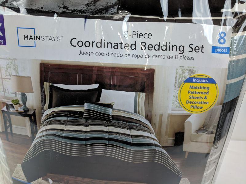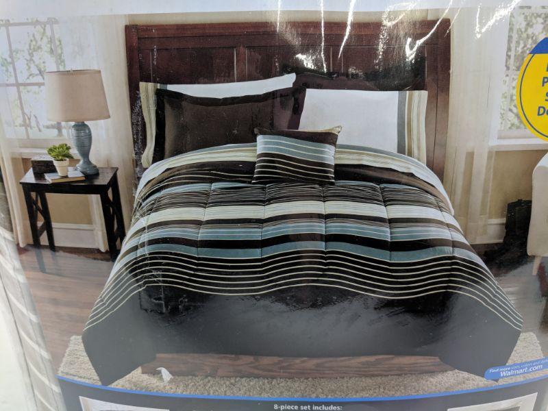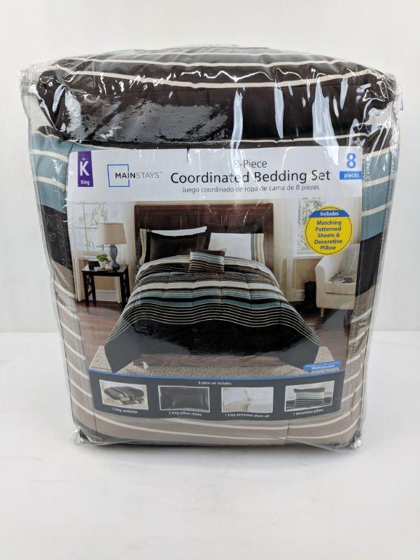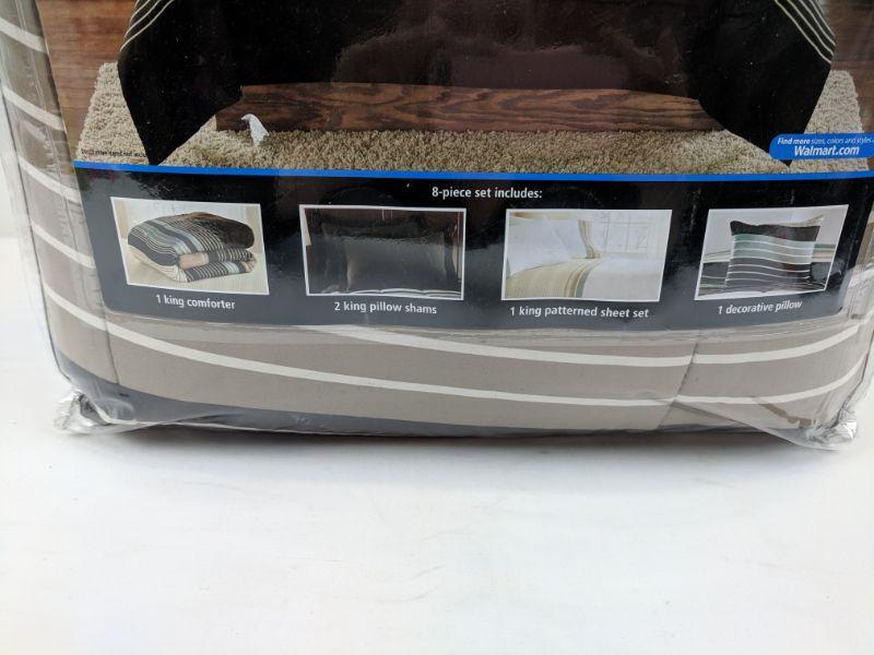 King 8-PC Coordinating Bedding Set, Urban Stripe, 1 Comforter/2 King Shams/1 Sheet Set/1 Decor Pillow - New