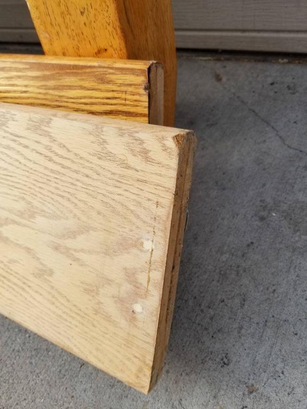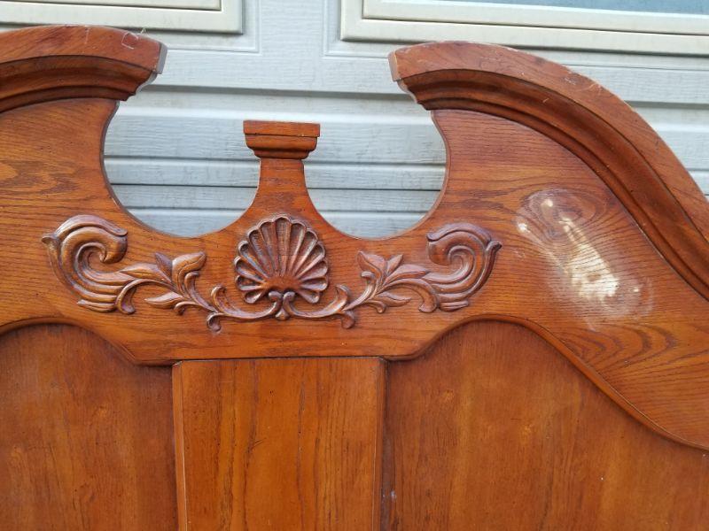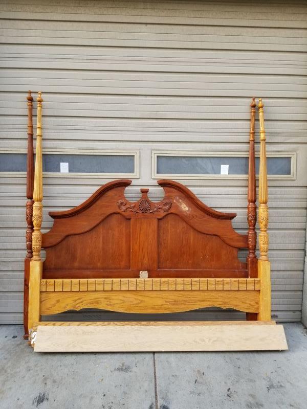 King Bed Frame, Wood, Needs Some TLC (Posts Damaged, 1 Rail Hook Missing)