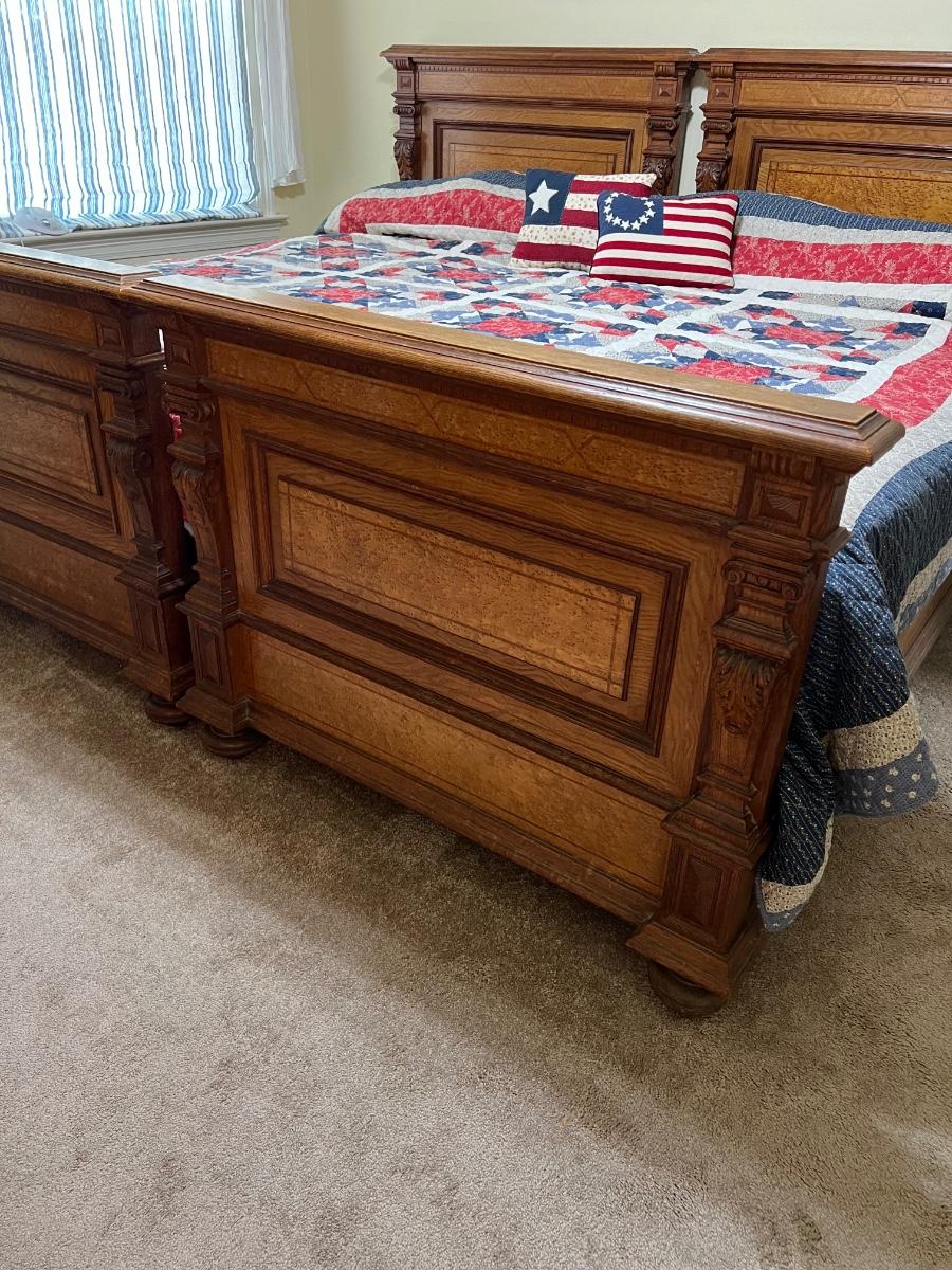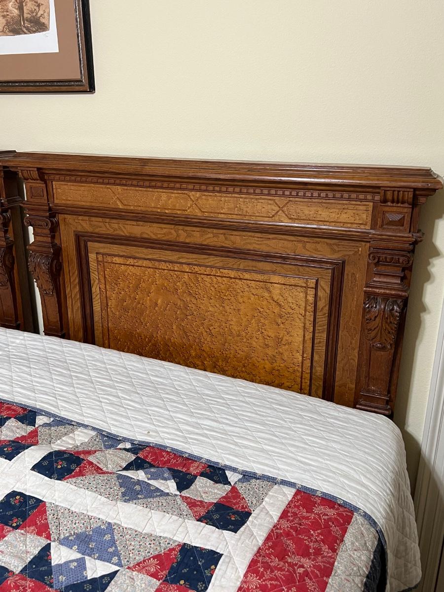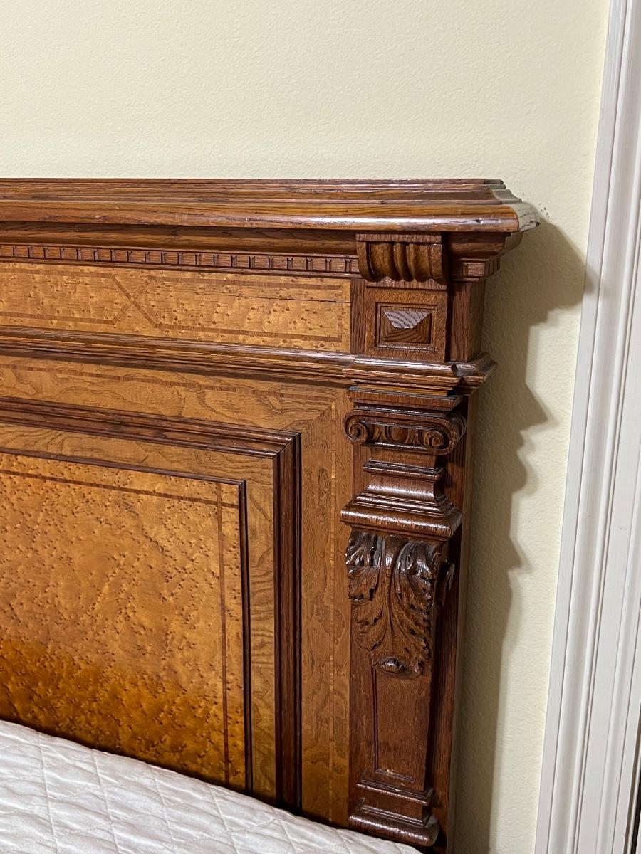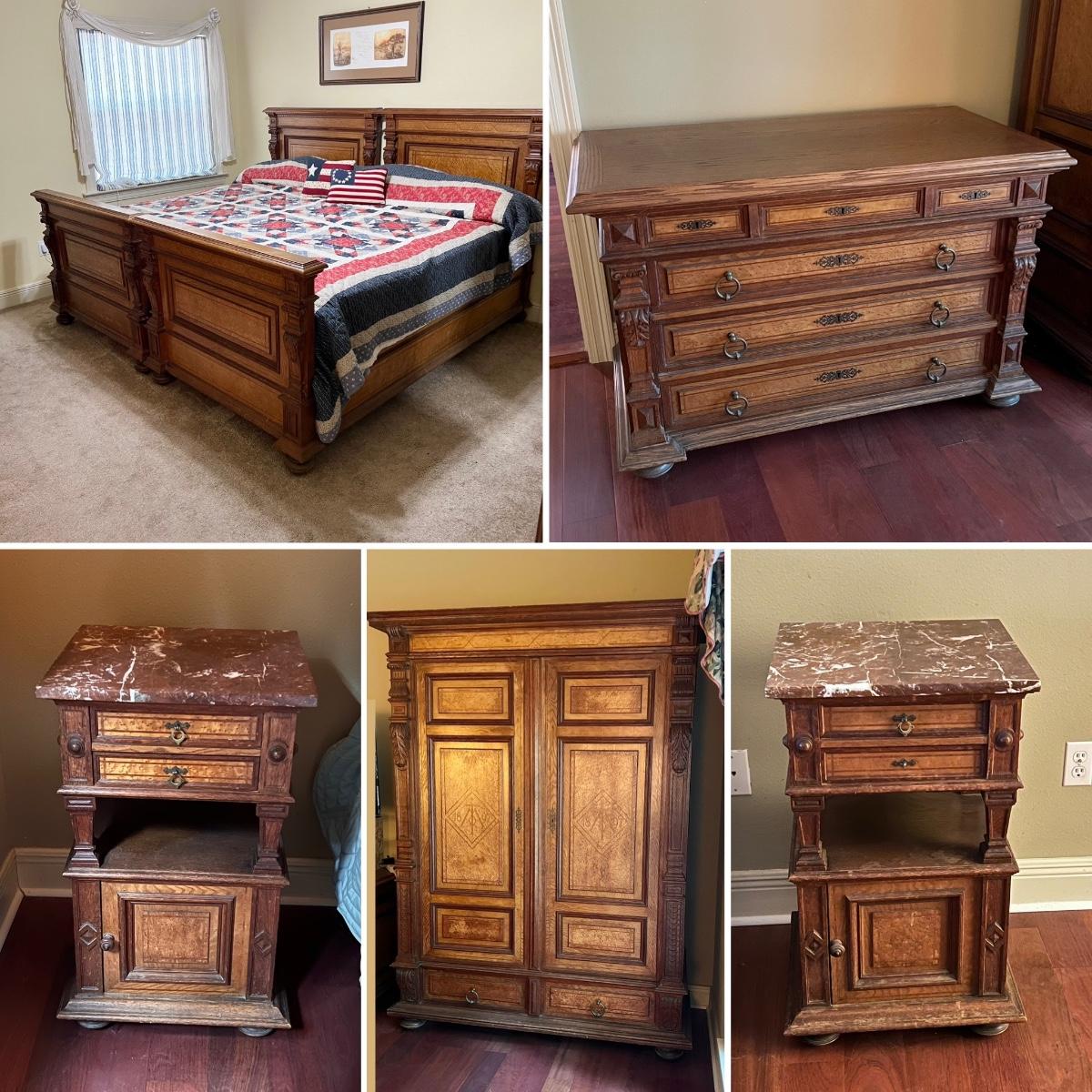 1897 ~ Five (5) Piece Oak Inlaid Solid Wood Double Twin Set ~ German ~*Read Details