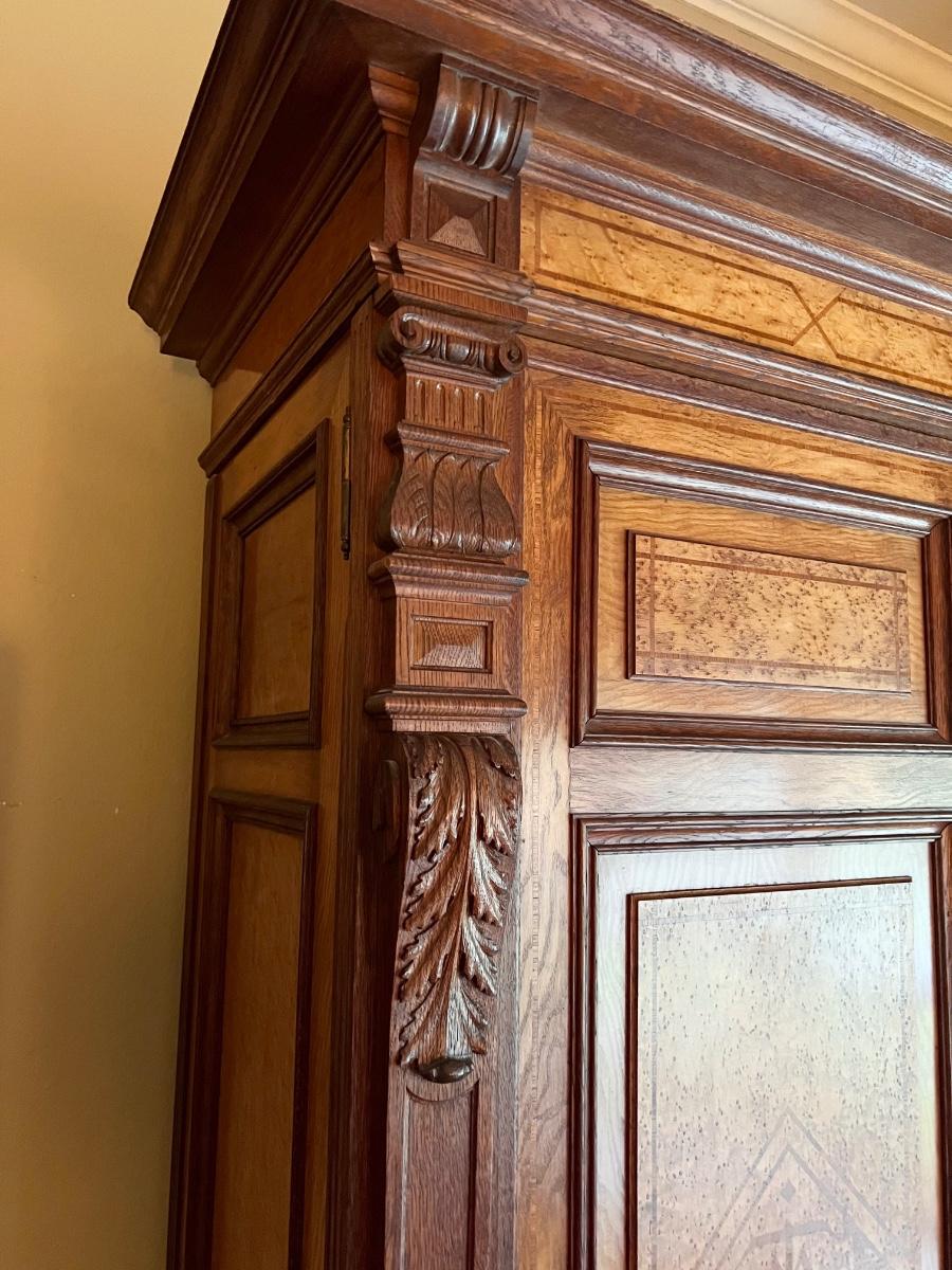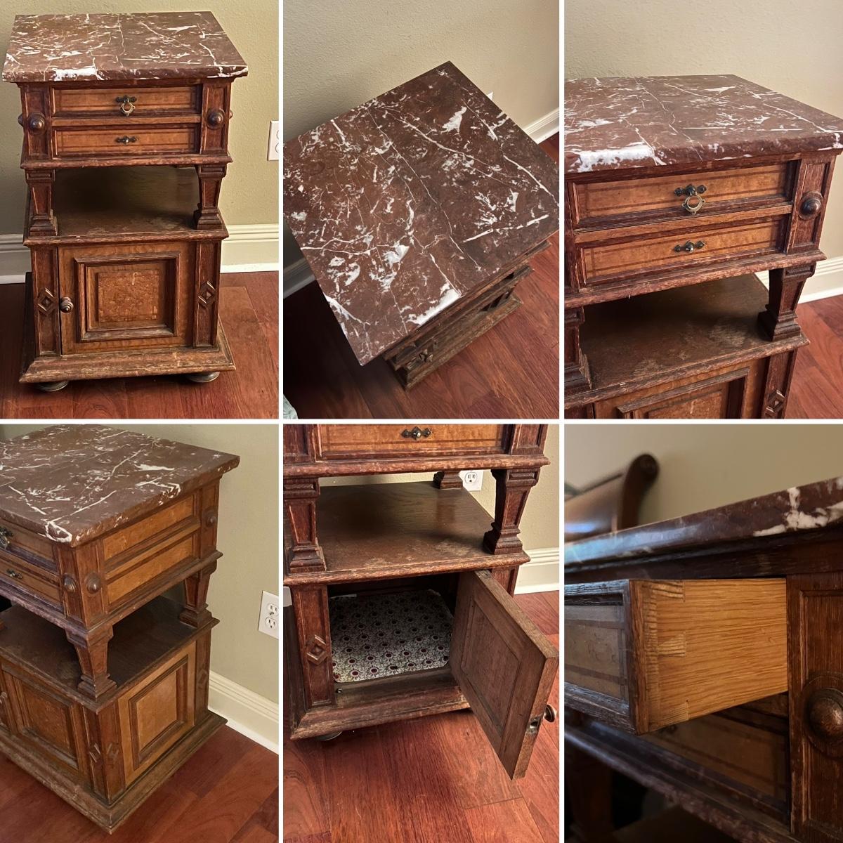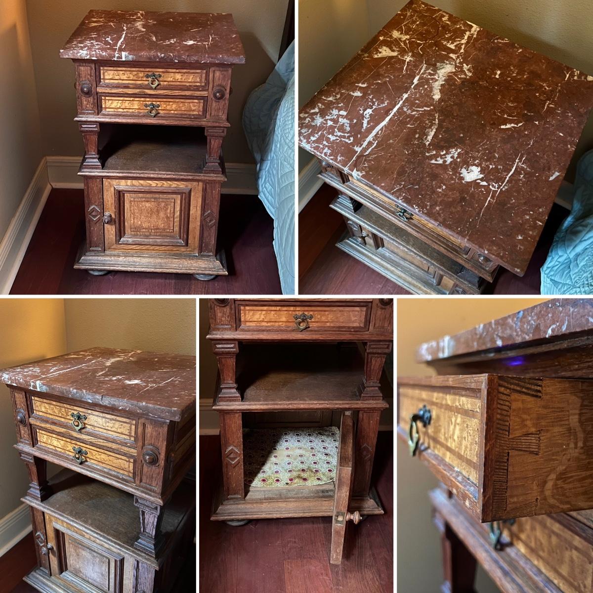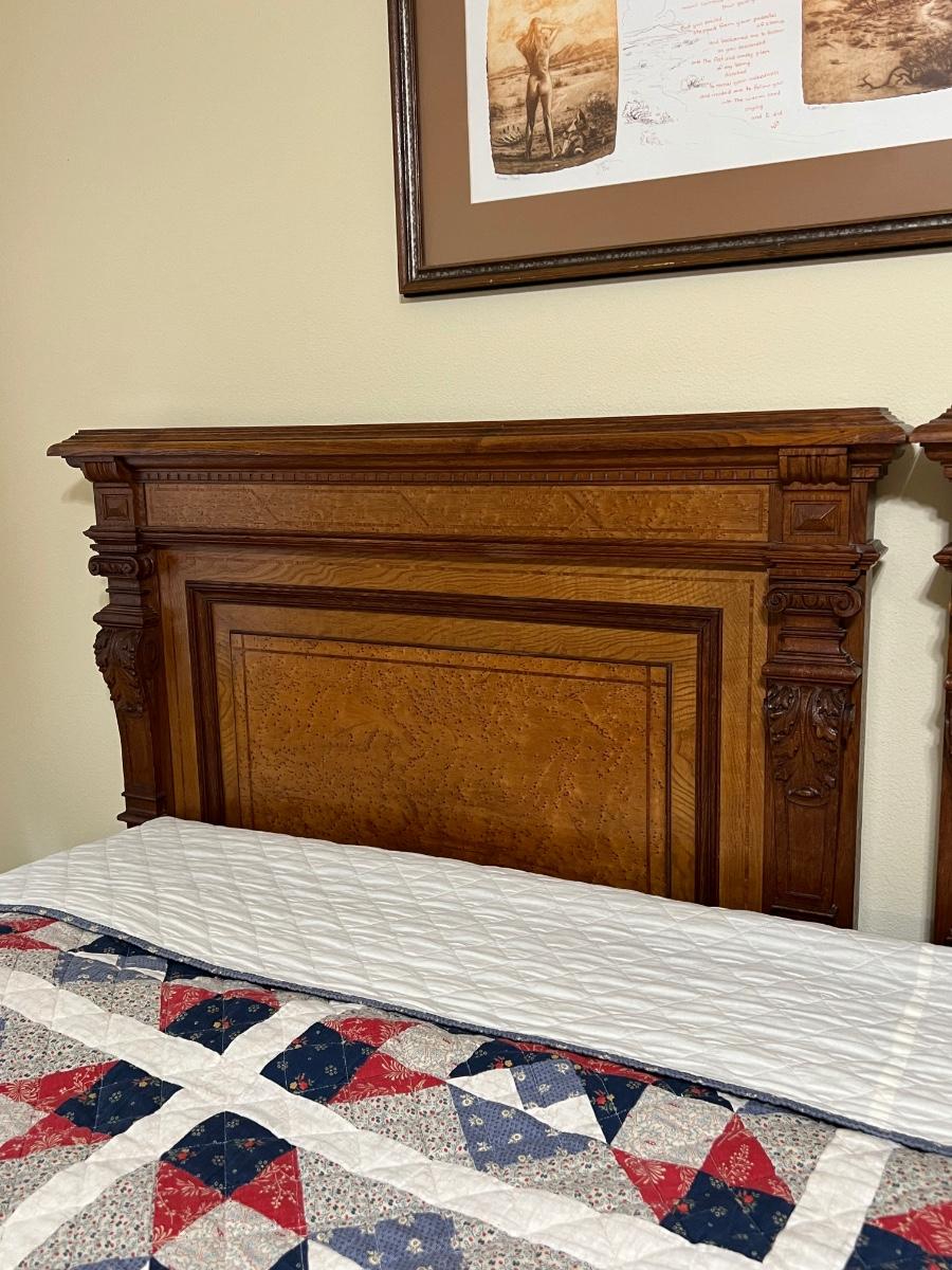 1897 ~ Five (5) Piece Oak Inlaid Solid Wood Double Twin Set ~ German ~*Read Details