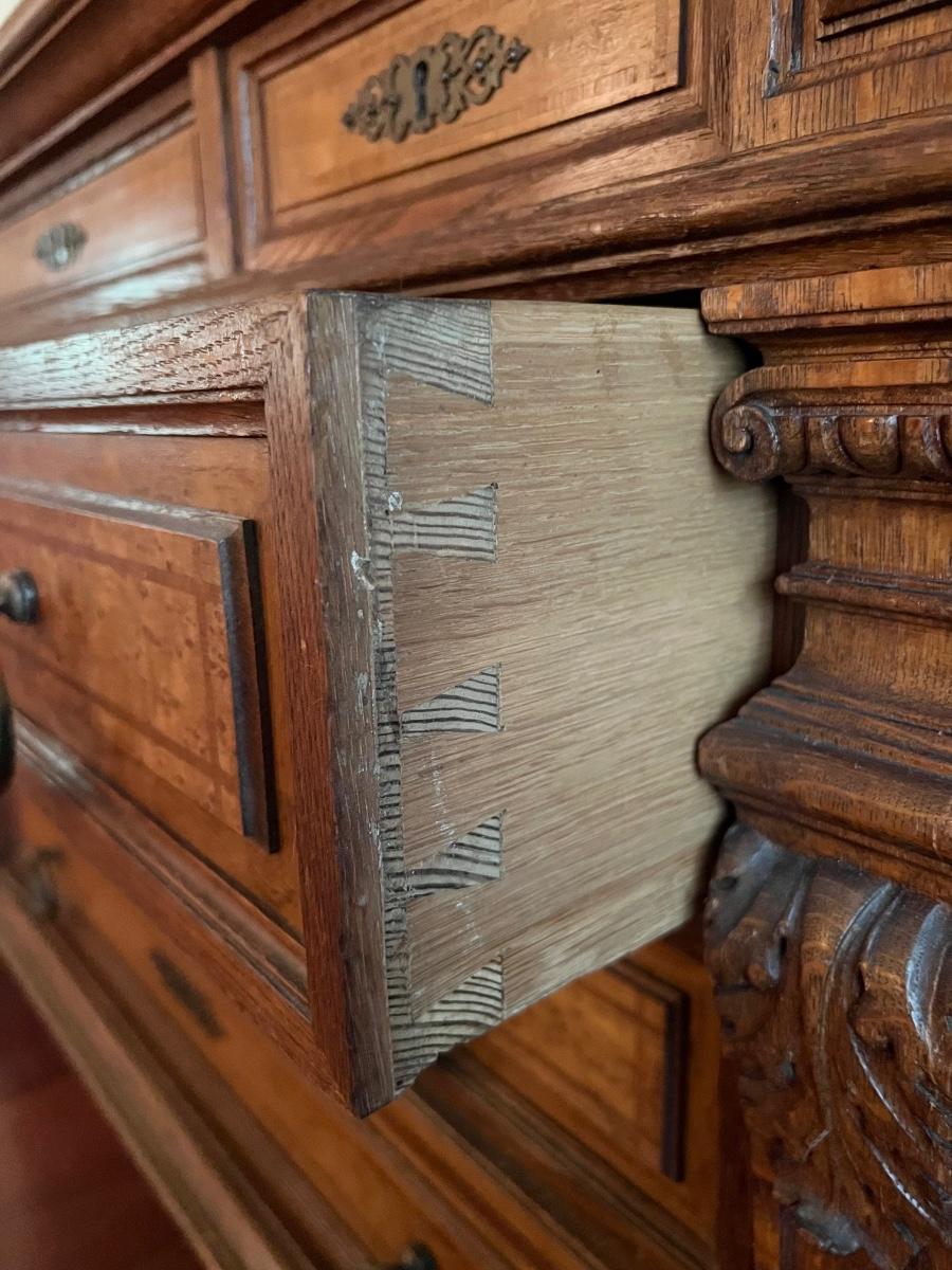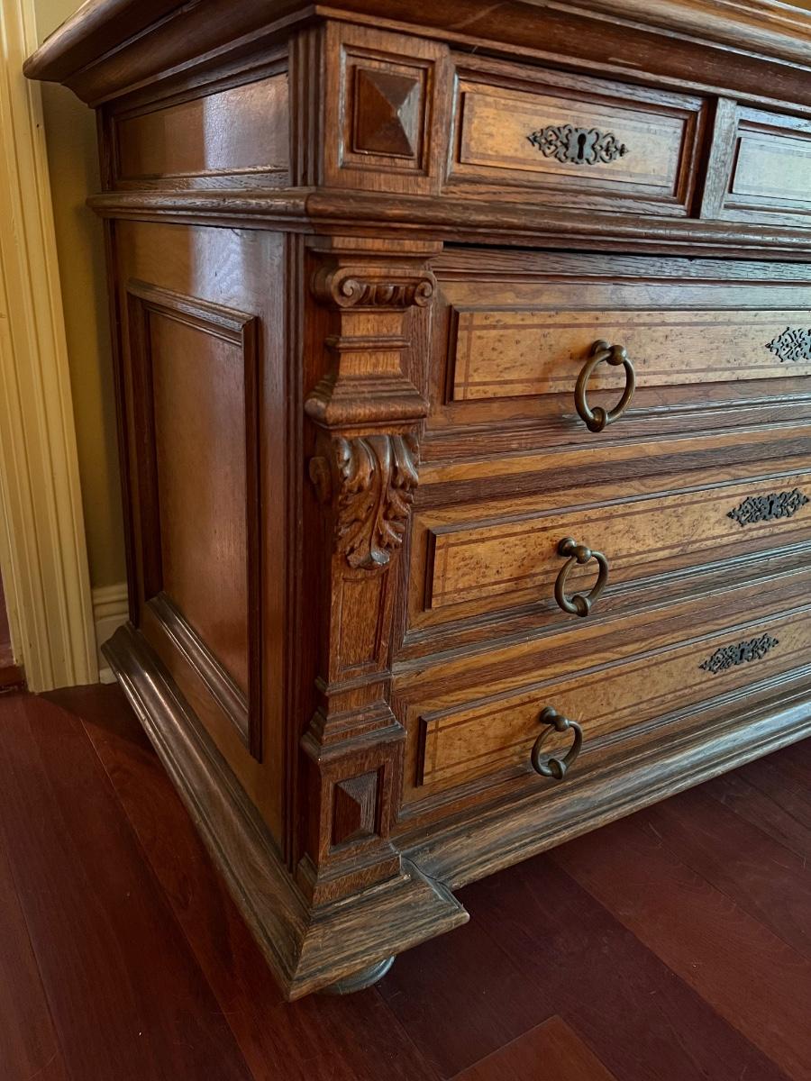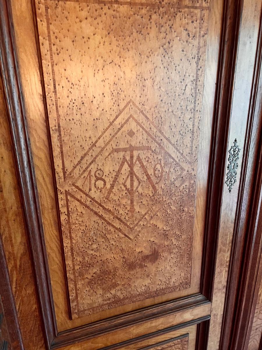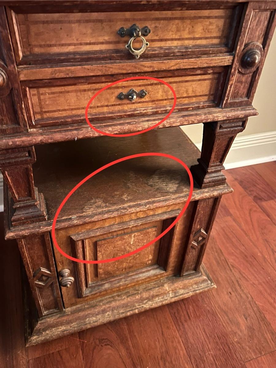1897 ~ Five (5) Piece Oak Inlaid Solid Wood Double Twin Set ~ German ~*Read Details
