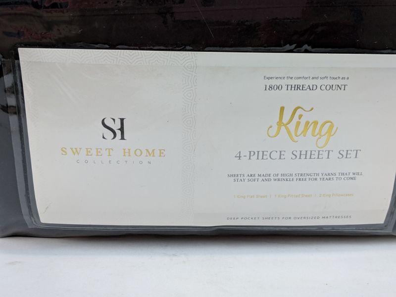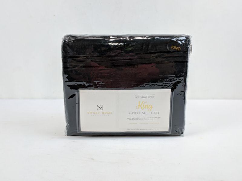 King Black 4-PC Sheet Set, 1800 Thread CT, 1 Flat/1 Fitted/2 King Pillowcases - New