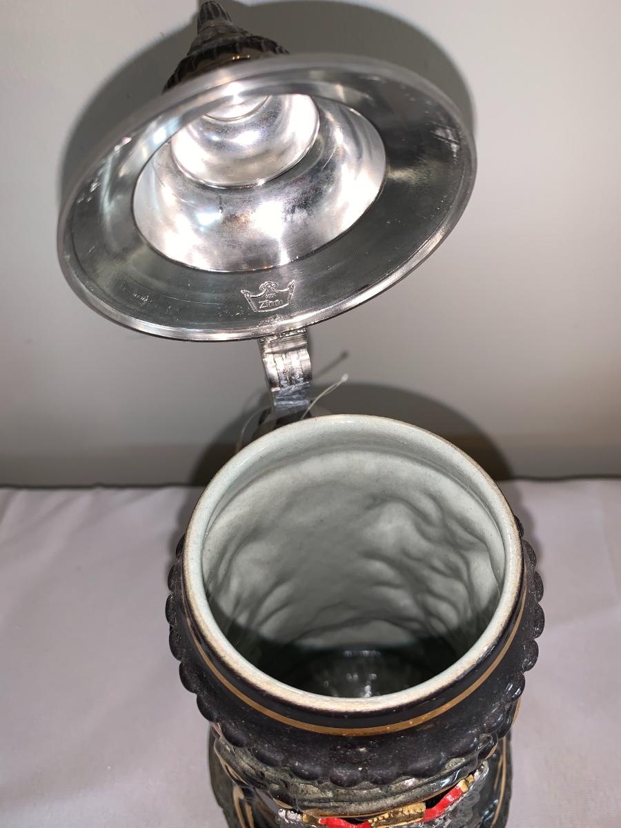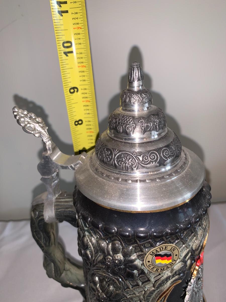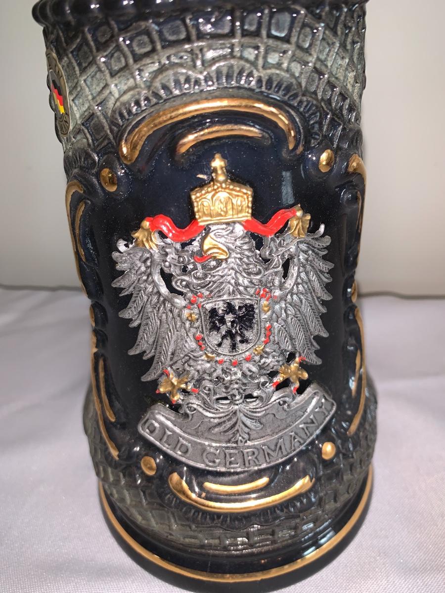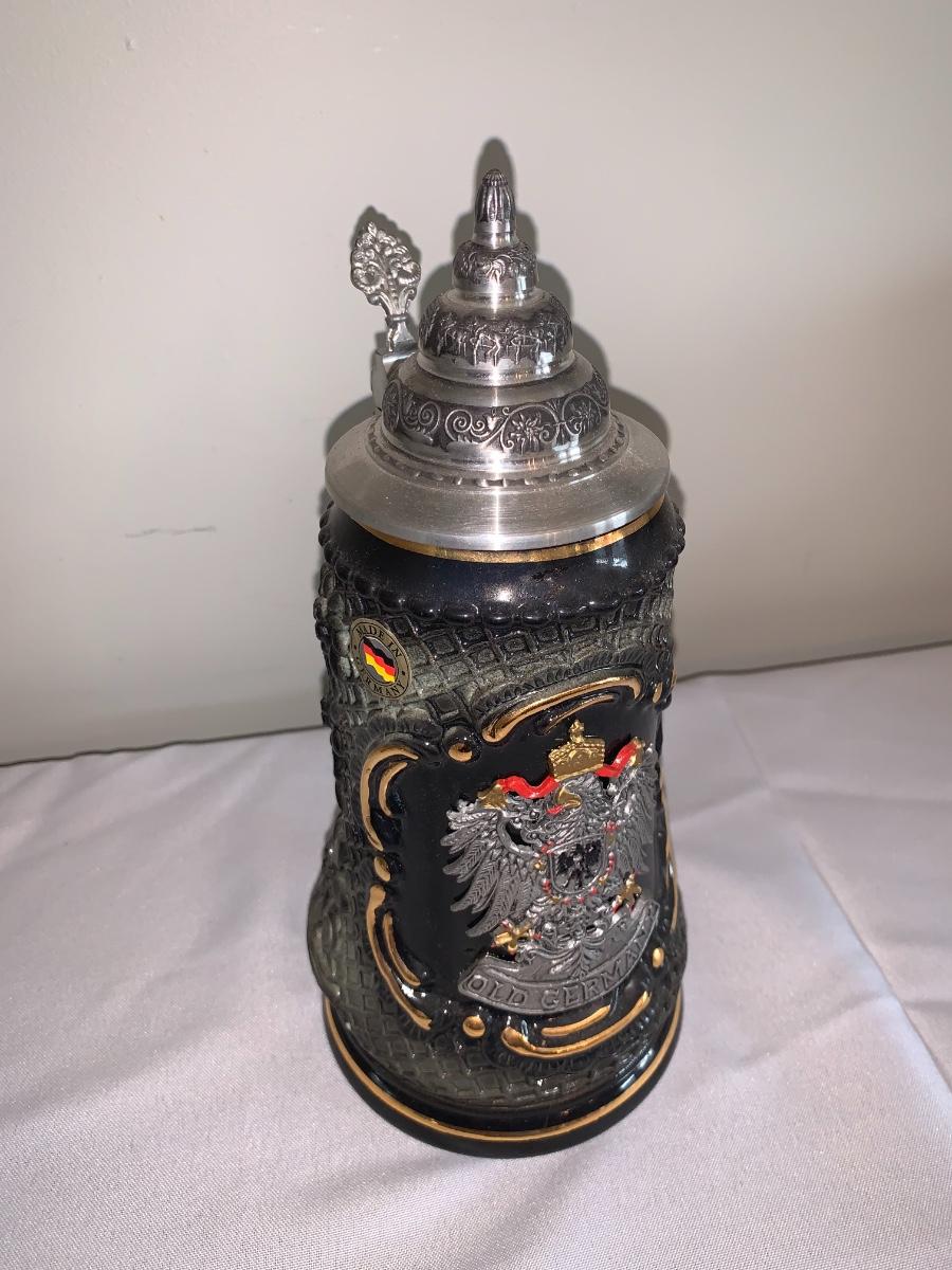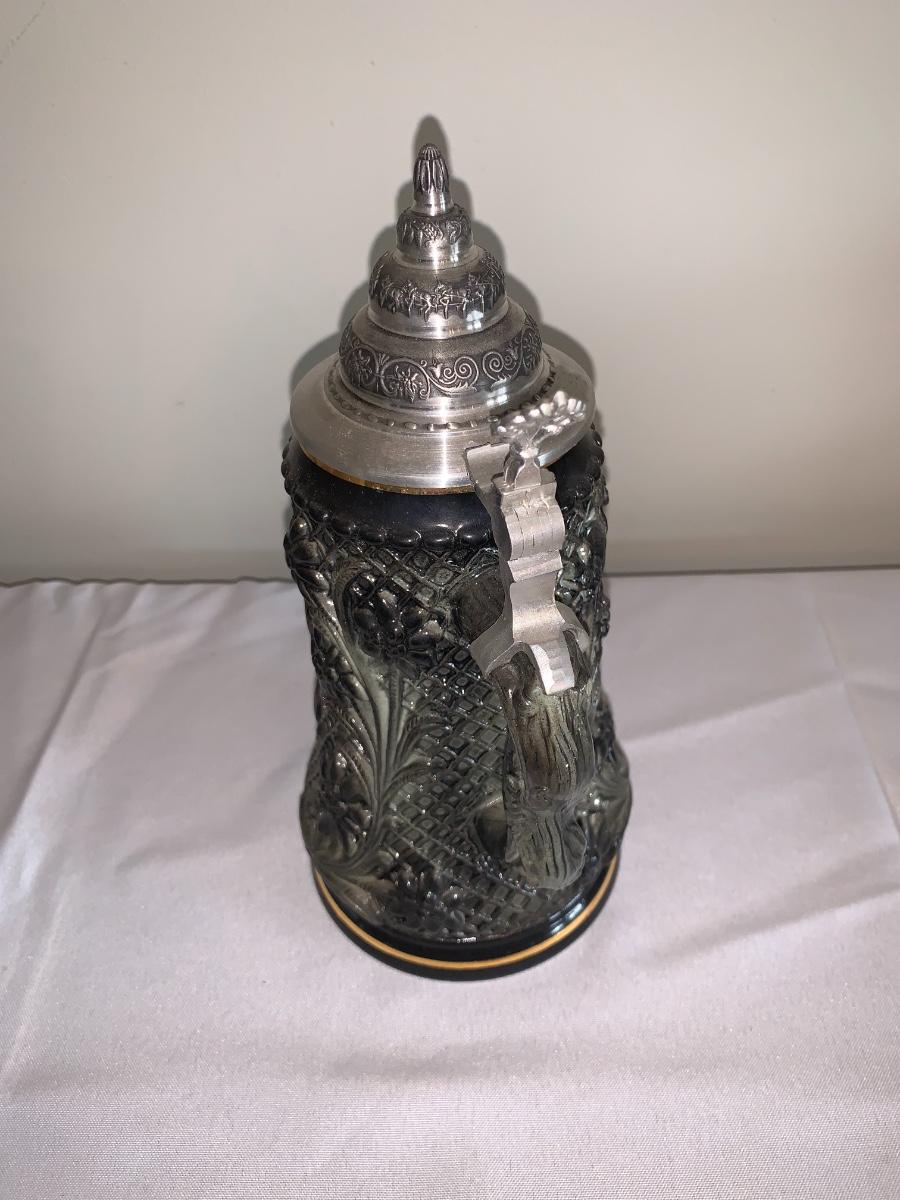 Made in Germany, this black, pewter and gold stein is hand painted. Numbered limited edition.
