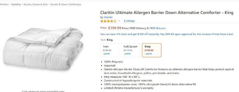 King Claritin Embossed Comforter Ultimate Allergen Barrier - New, $199 @ Walmart