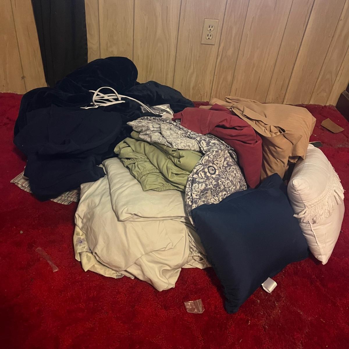 Lot includes king comforter, electric blanket that powered on when plugged in, accent pillows, four king sheet sets and an assortment of pillowcases and more. The comforter and pillow shams are Huntington Home brand. Local Pickup Only