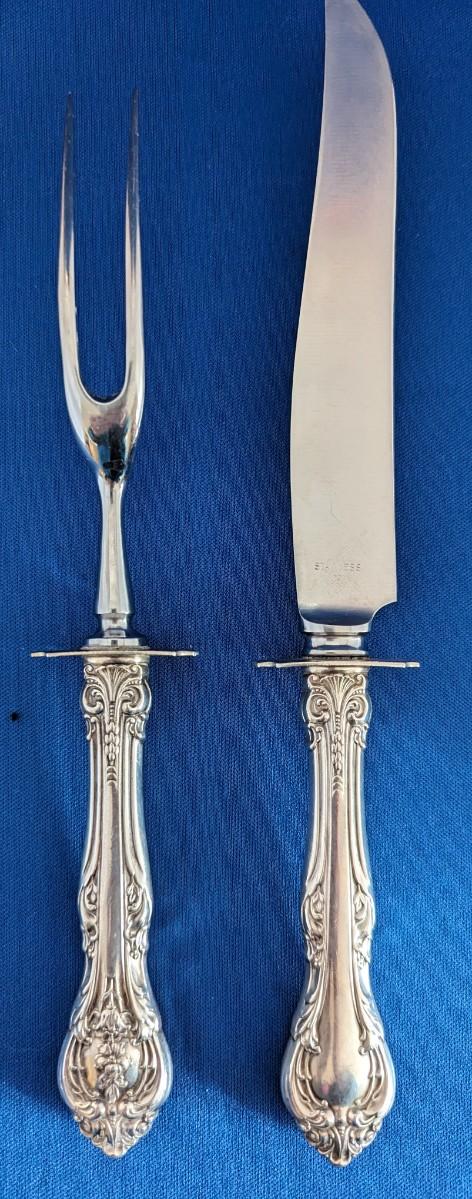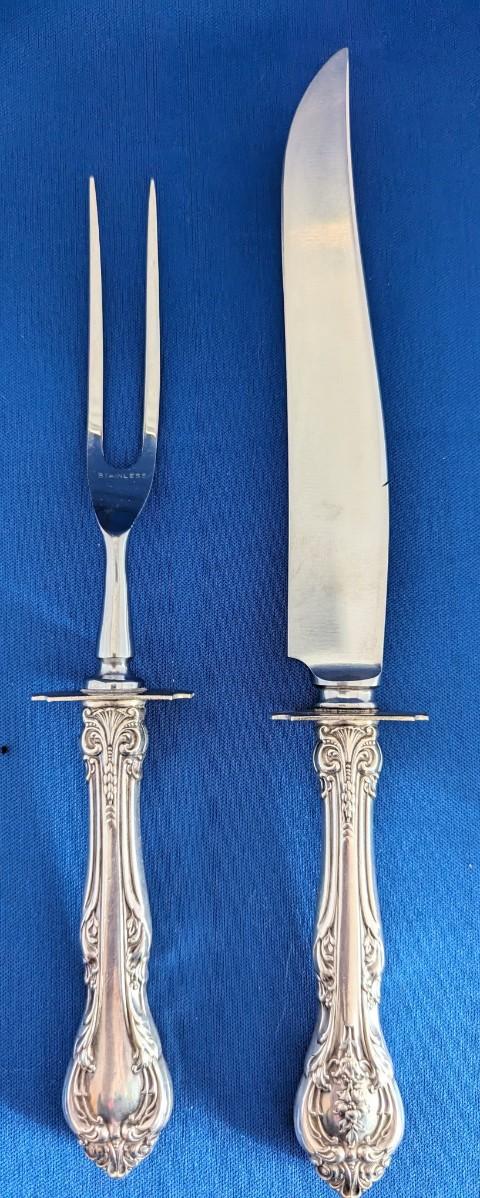 King Edward Gorham Sterling and Stainless steel carving set with guards