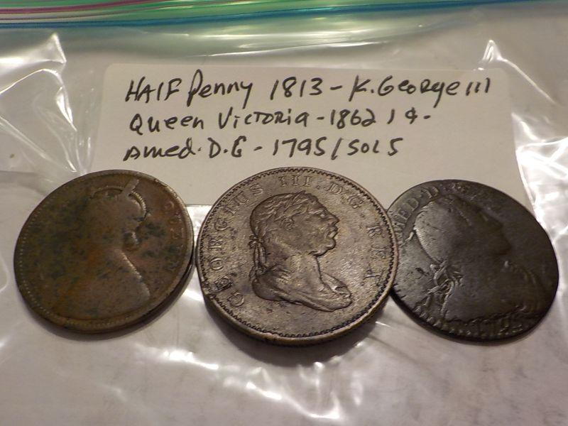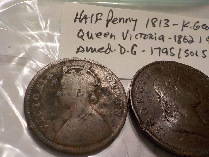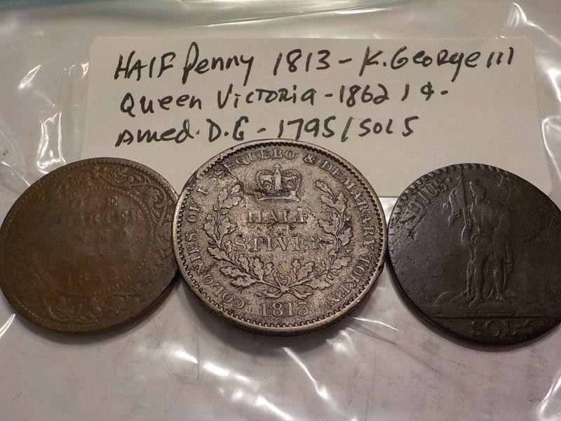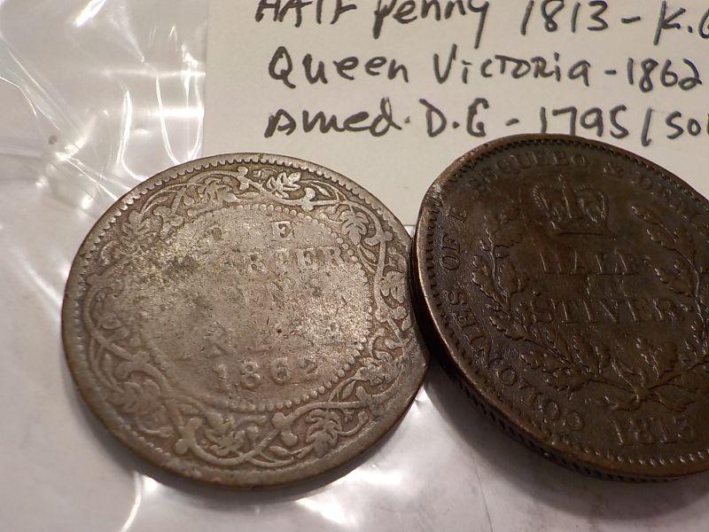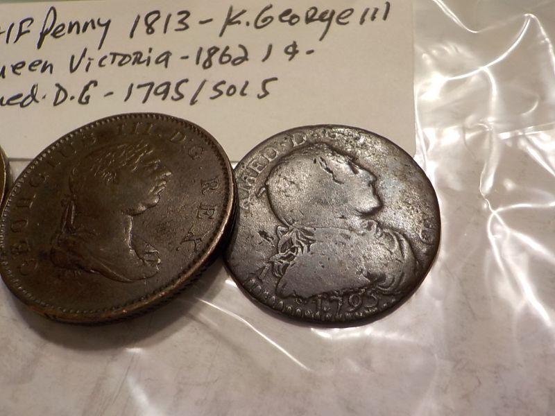 King George 111-1813,/ 1862 Queen Victoria- 1 cent, / 1795 Amed . d.g.,sol 5.