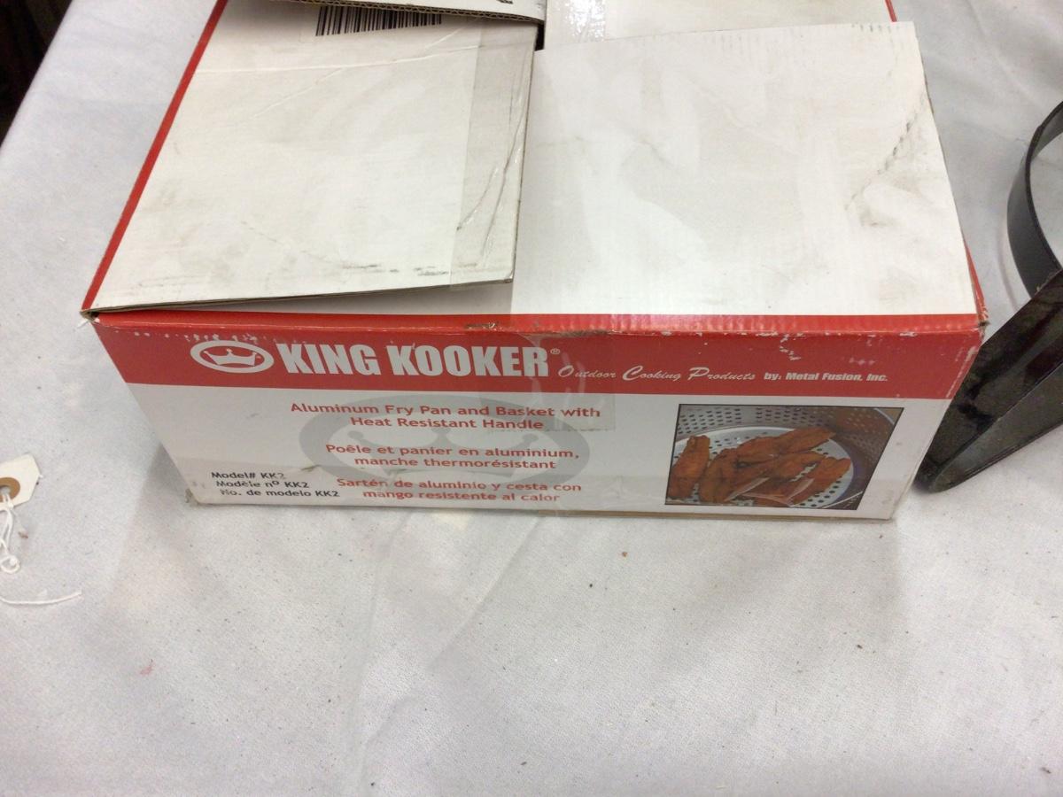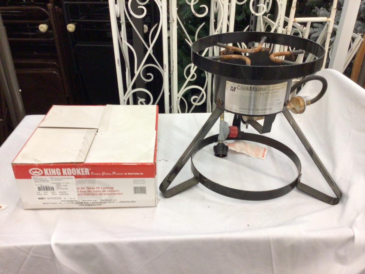 You get a great King Kooker multi purpose propane outdoor cooker. The fire part has been used but the cooker part is brand new.