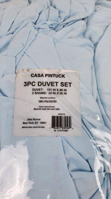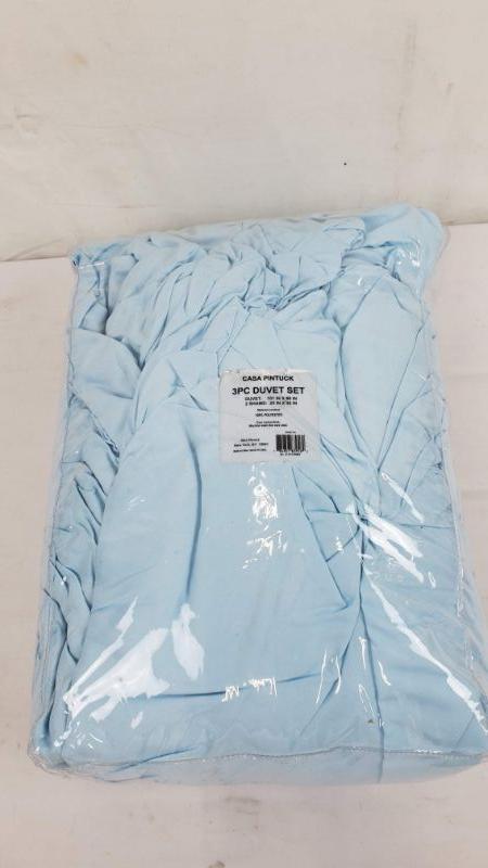 King Light Blue Casa Pintuck 3 Piece Duvet Set, Duvet & 2 Shams - New, Open Package