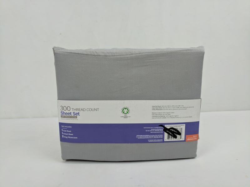 King Sheet Set, Grey, 300 Thread Count, 1 Flat/1 Fitted/2 Pillowcases, Case Dirty - New