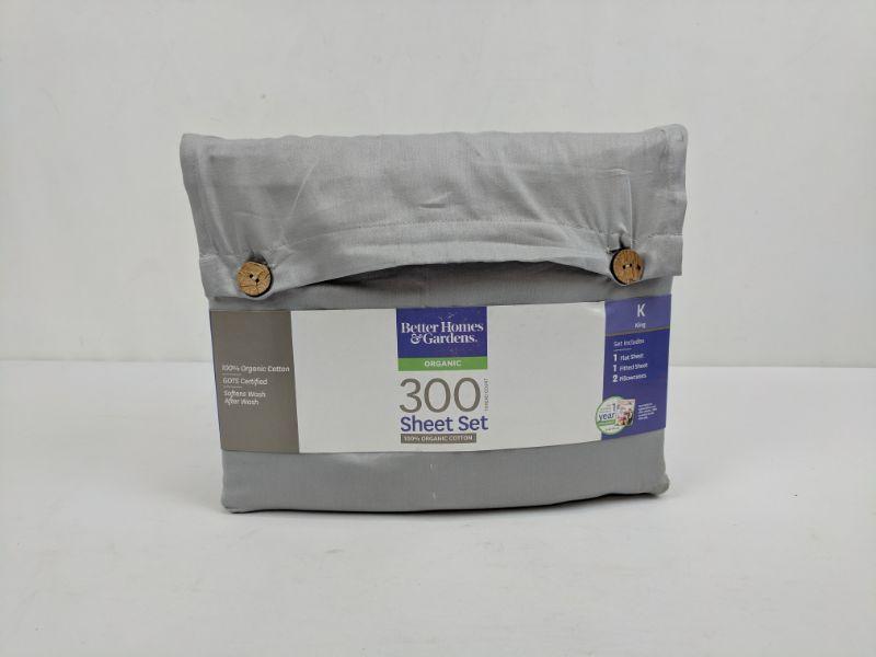 King Sheet Set, Grey, 300 Thread Count, 1 Flat/1 Fitted/2 Pillowcases - New