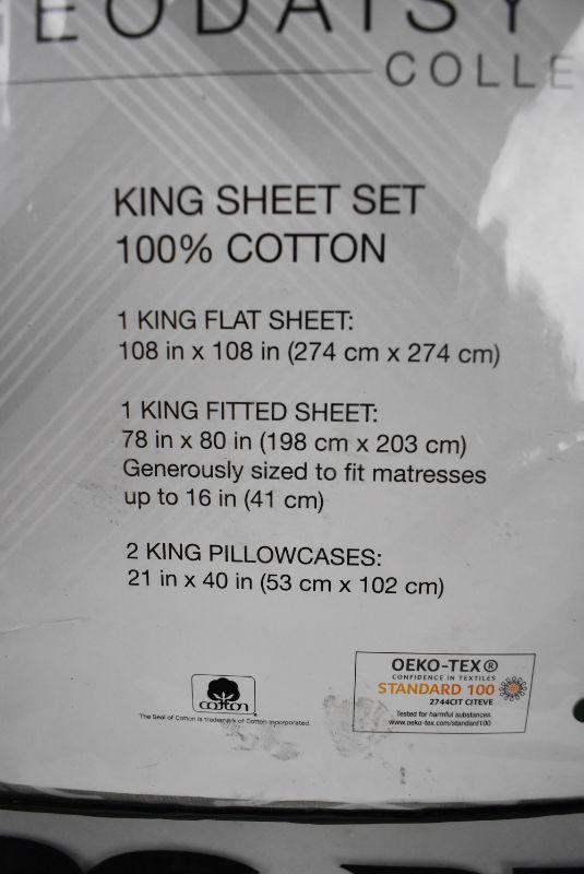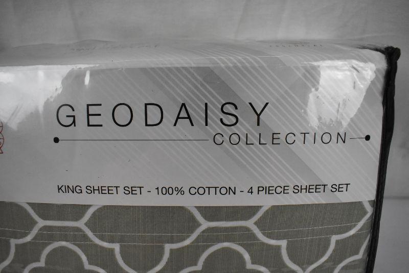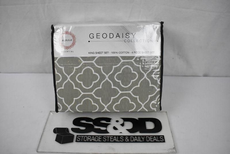 King Sheet Set, Taupe Trellis Pattern, Aura Essential Geo Daisy Collection - New