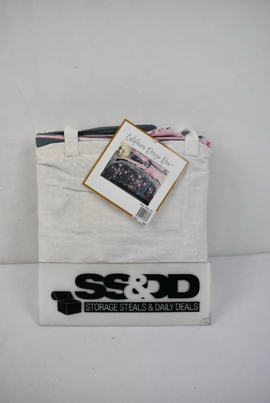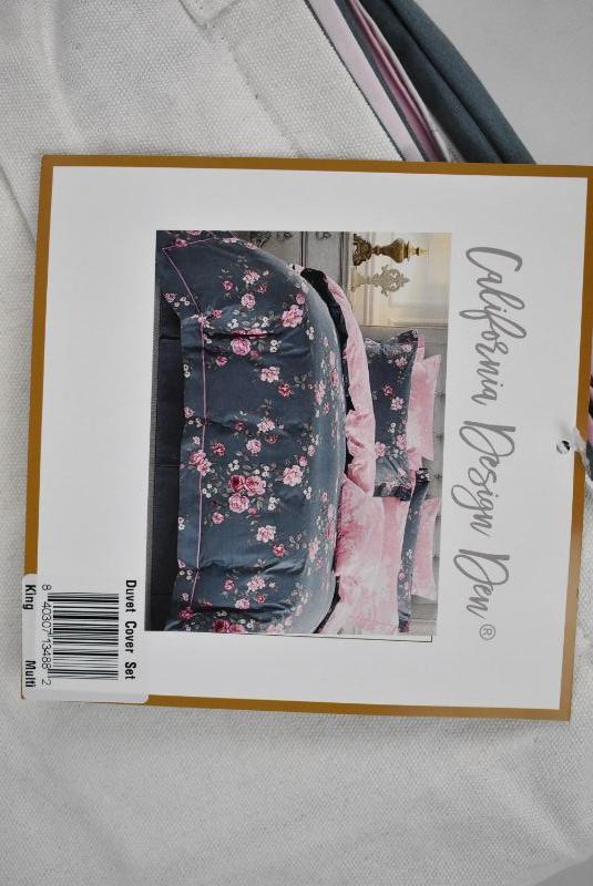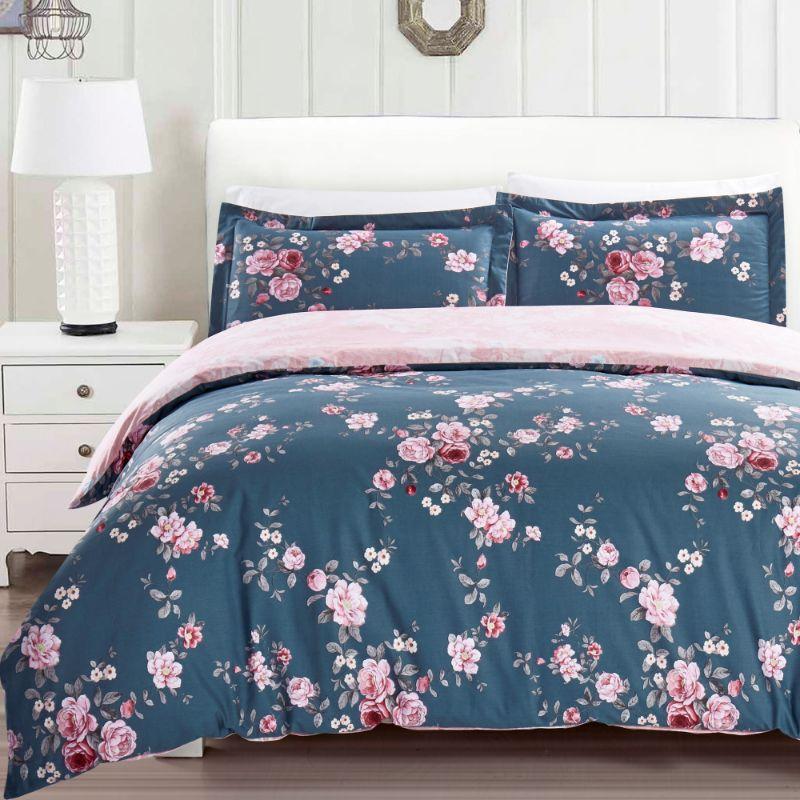 King Size 3 Piece Duvet Cover Set, Blue & Pink Floral by California Design - New