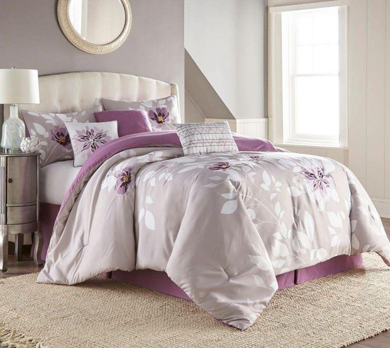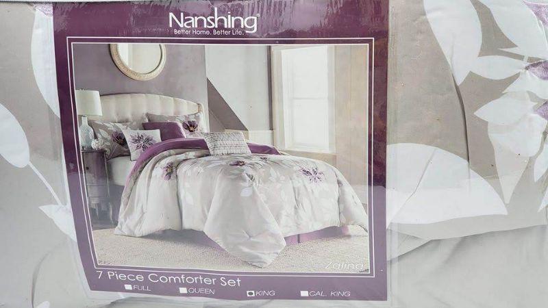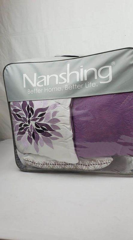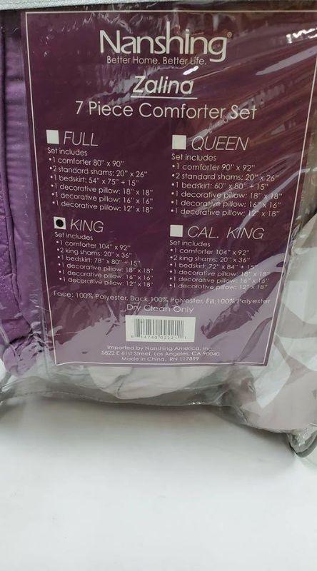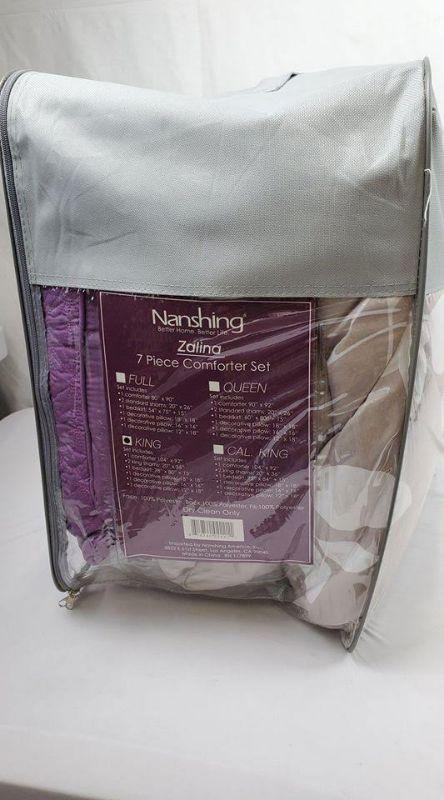 King Size 7 PC Nanshing Zalina Comforter Set, Purple & Tan - New