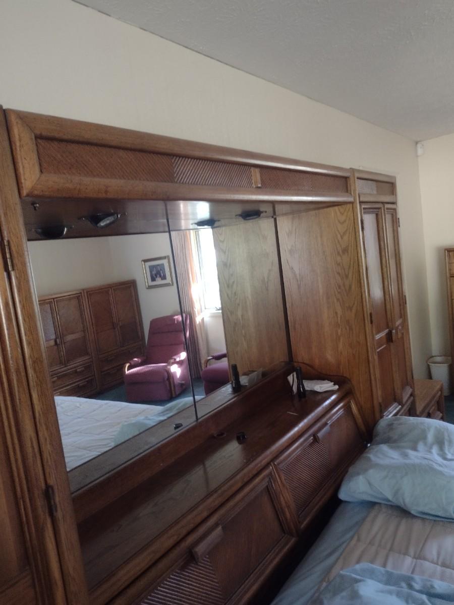 King Size Bed with Wall Unit Storage Cabinets