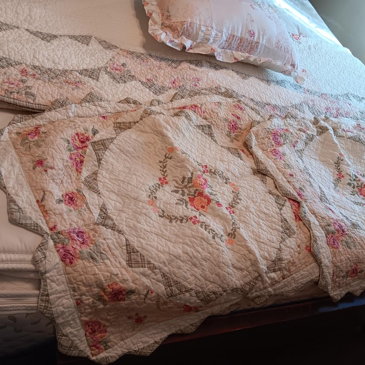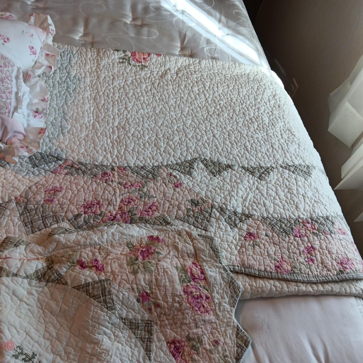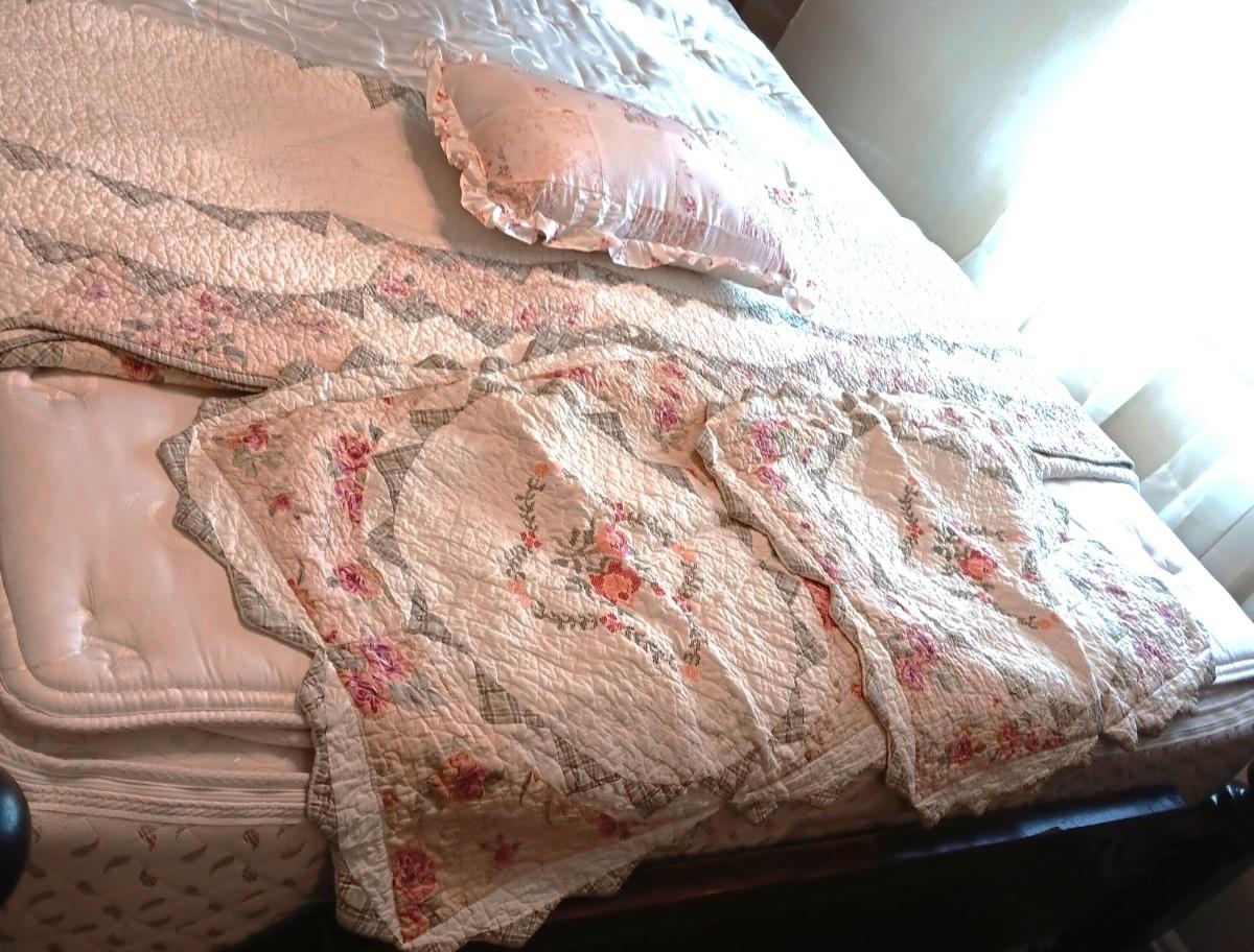 KING SIZE BEDSPREAD, PILLOW SHAMS AND THROW PILLOW