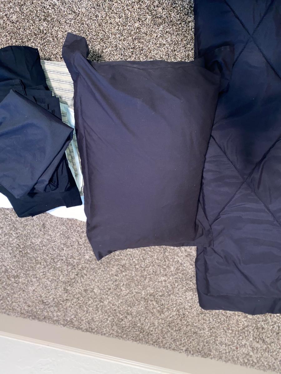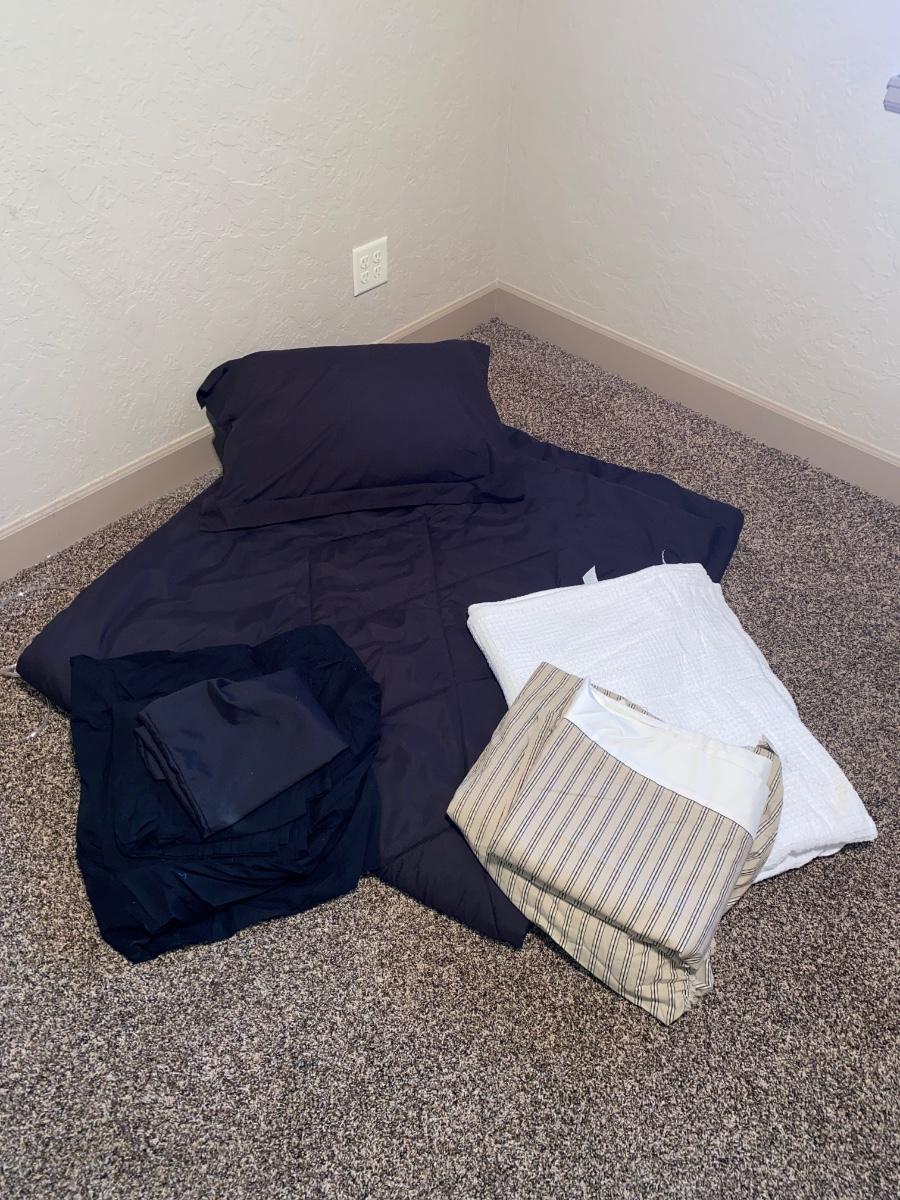 KING SIZE COMFORTER, KING BLANKET, TWO SETS OF KING SHEETS, AND PILLOW