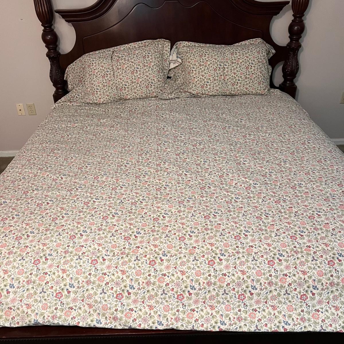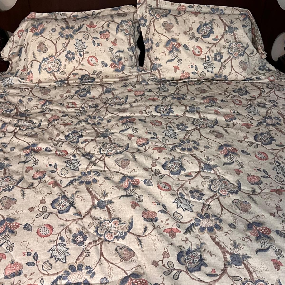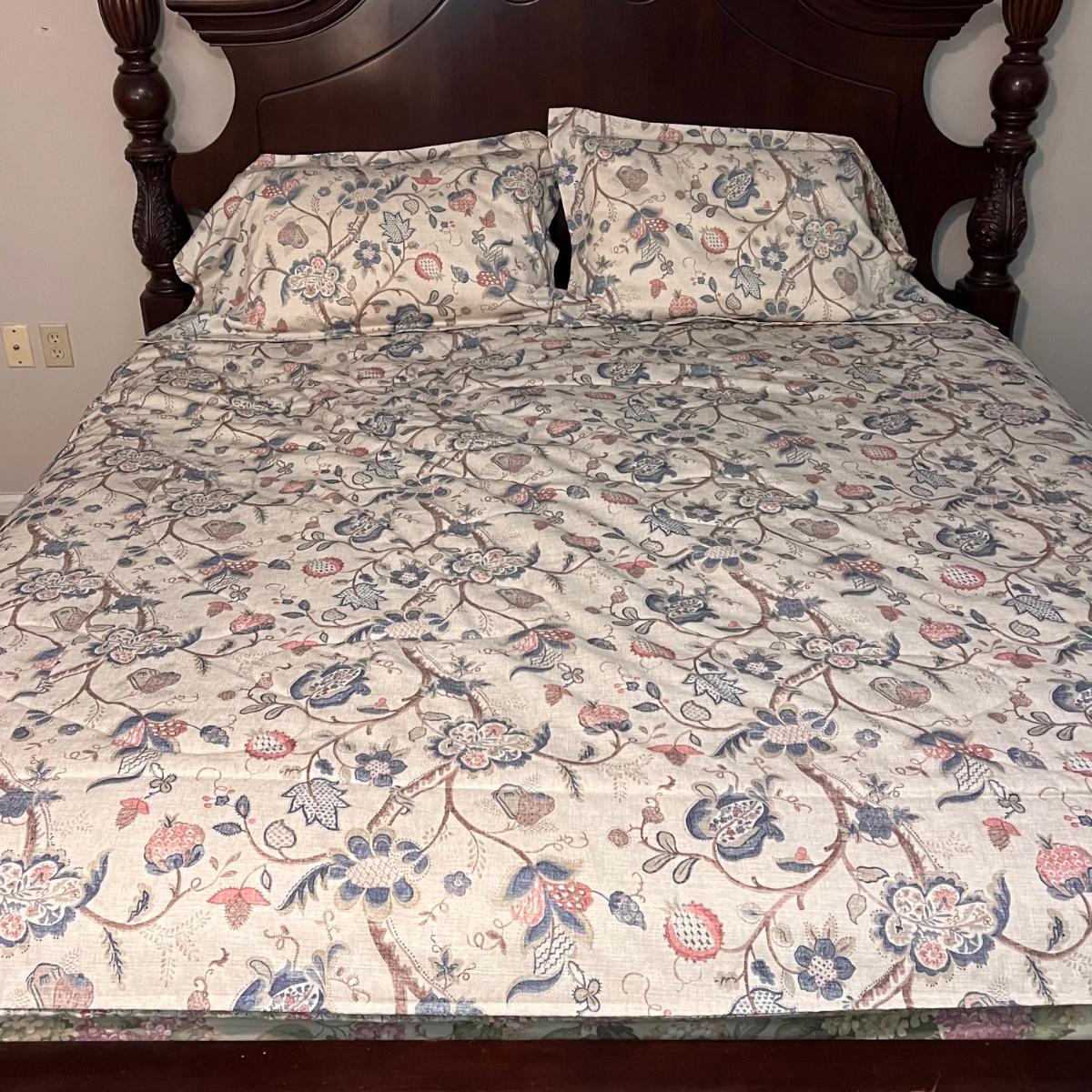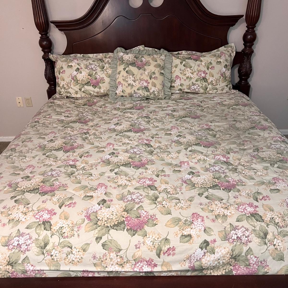 Lot includes three king size comforters that are all reversible, pillow shams to match each comforter, and a few decorative pillows. The first comforter shown is Martha Stewart. The second shown does not have any tags. The third comforter is Croscill. All in excellent condition. Shipping available. Shipping can be costly. We suggest contacting our preferred local shipping provider, Postage Express, with dimensions and getting an estimate before bidding: (828) 255-9250 or shipping@postageexpressnc.com.