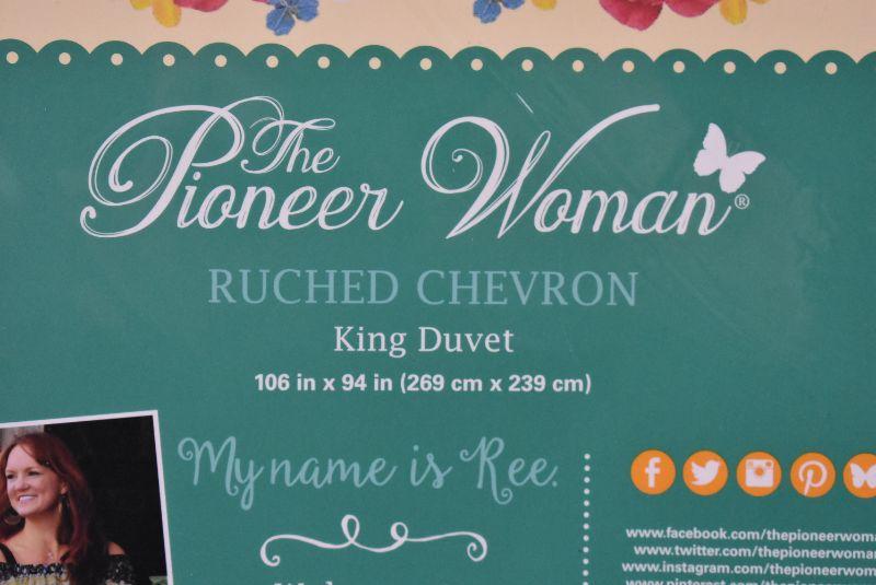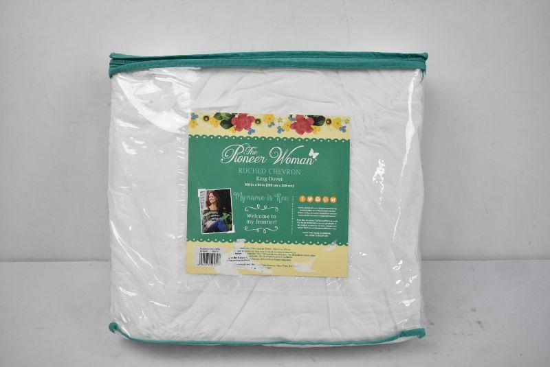 King Size Duvet Cover by The Pioneer Woman Ruched Chevron, White - New