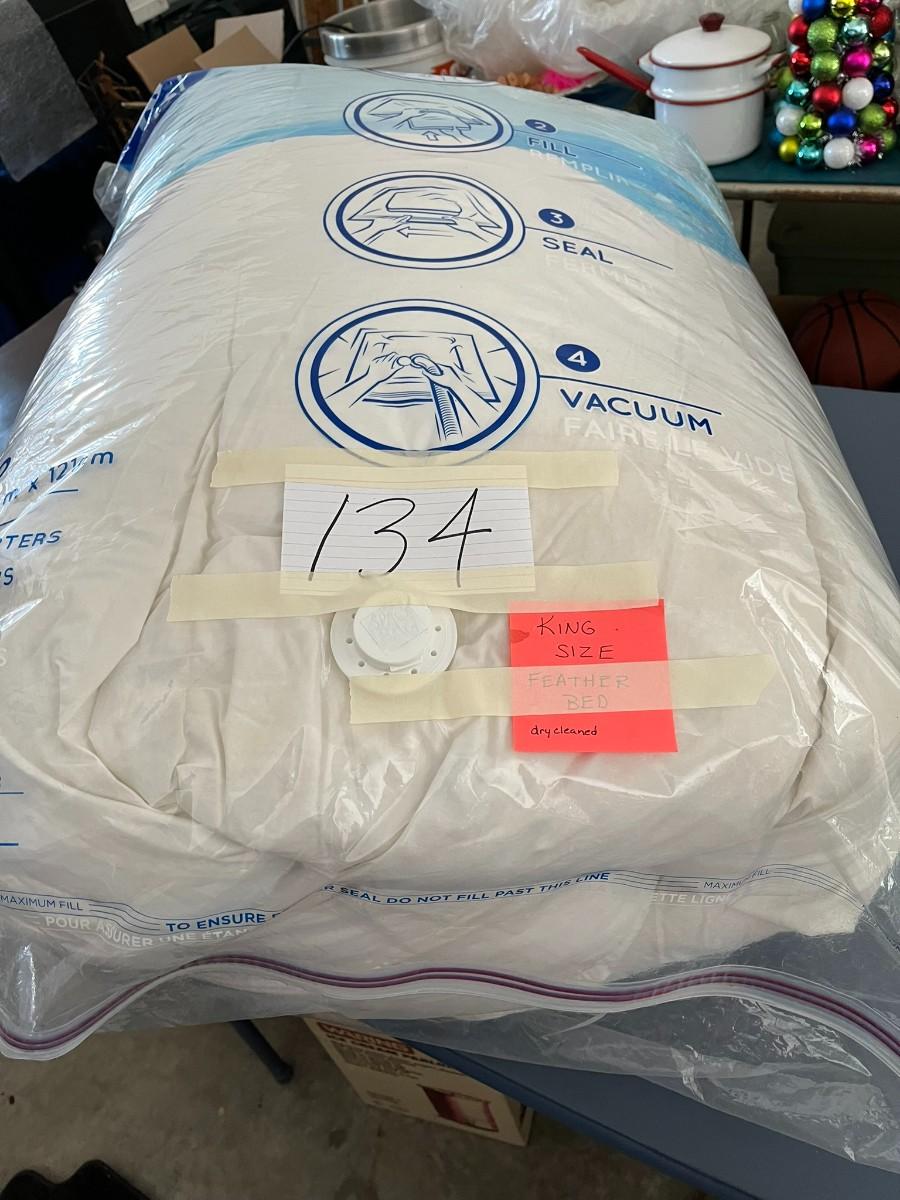 King Size Feather Bed in Protective Cover - Recently Dry Cleaned