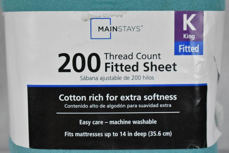 King Size Fitted Sheet "Turquoise Cove" by Mainstays 200 TC - New