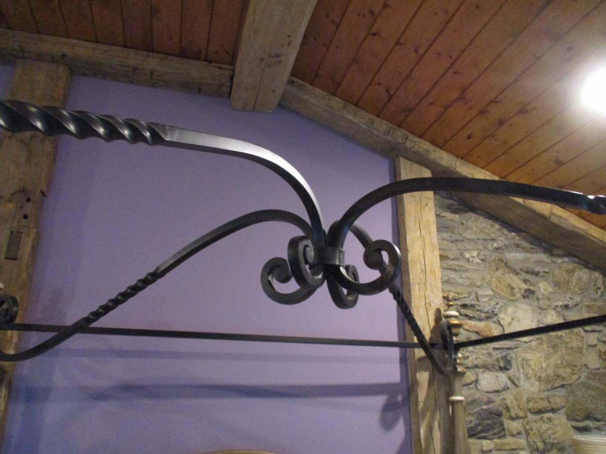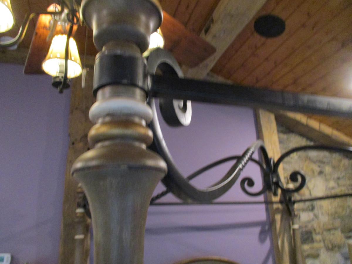 King Size Four Poster Bed with Wrought Metal Scroll Design Topper
