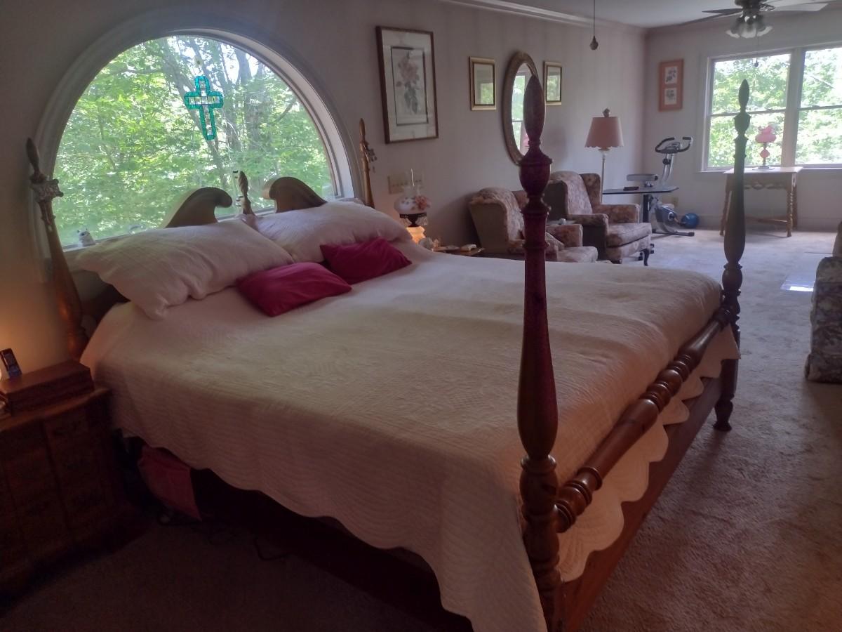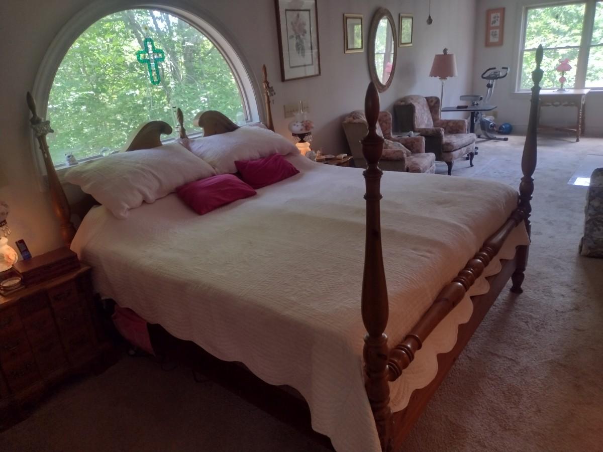 King Size Four Poster Pine Wood Bed Frame with Double Adjustable Beautyrest Bed System. Bring tools to break down. Upstairs item