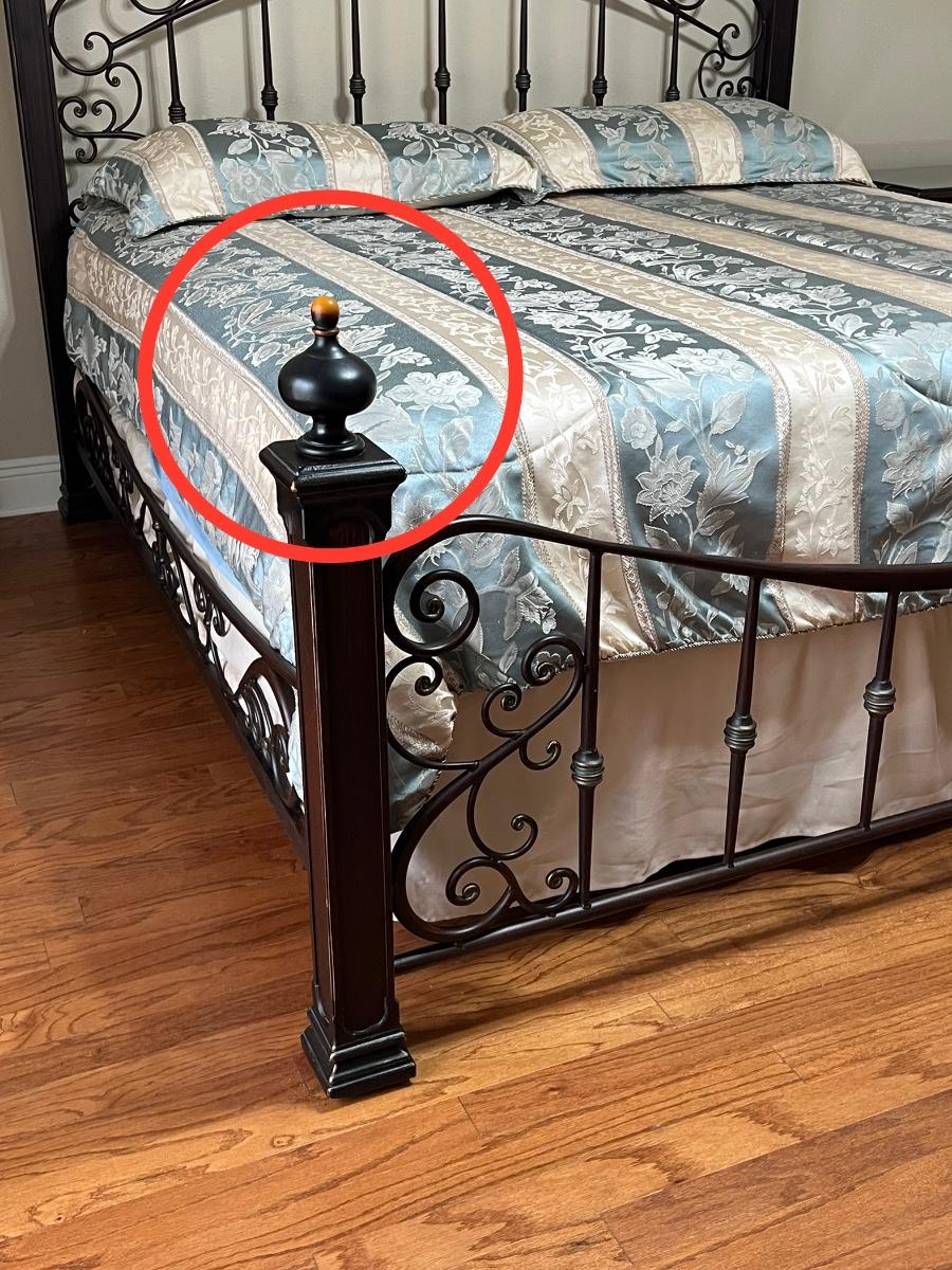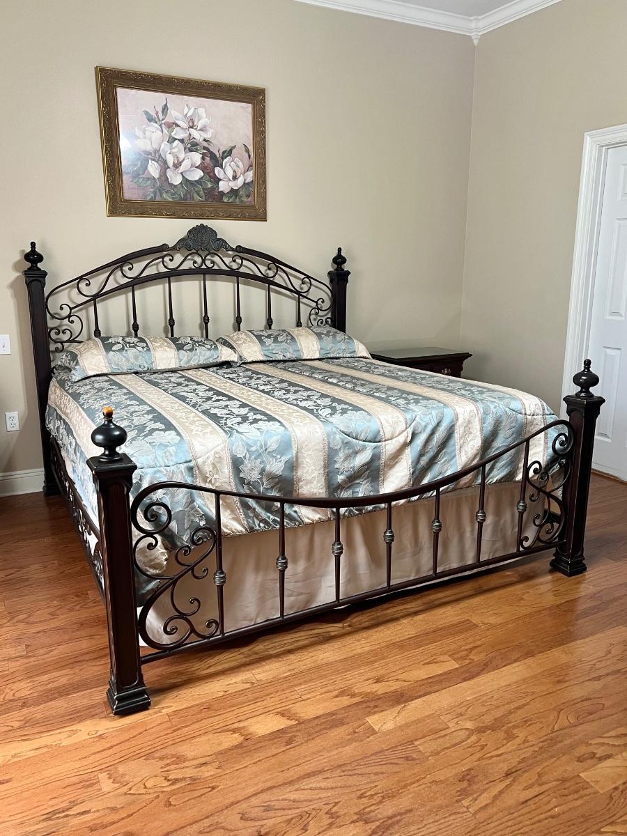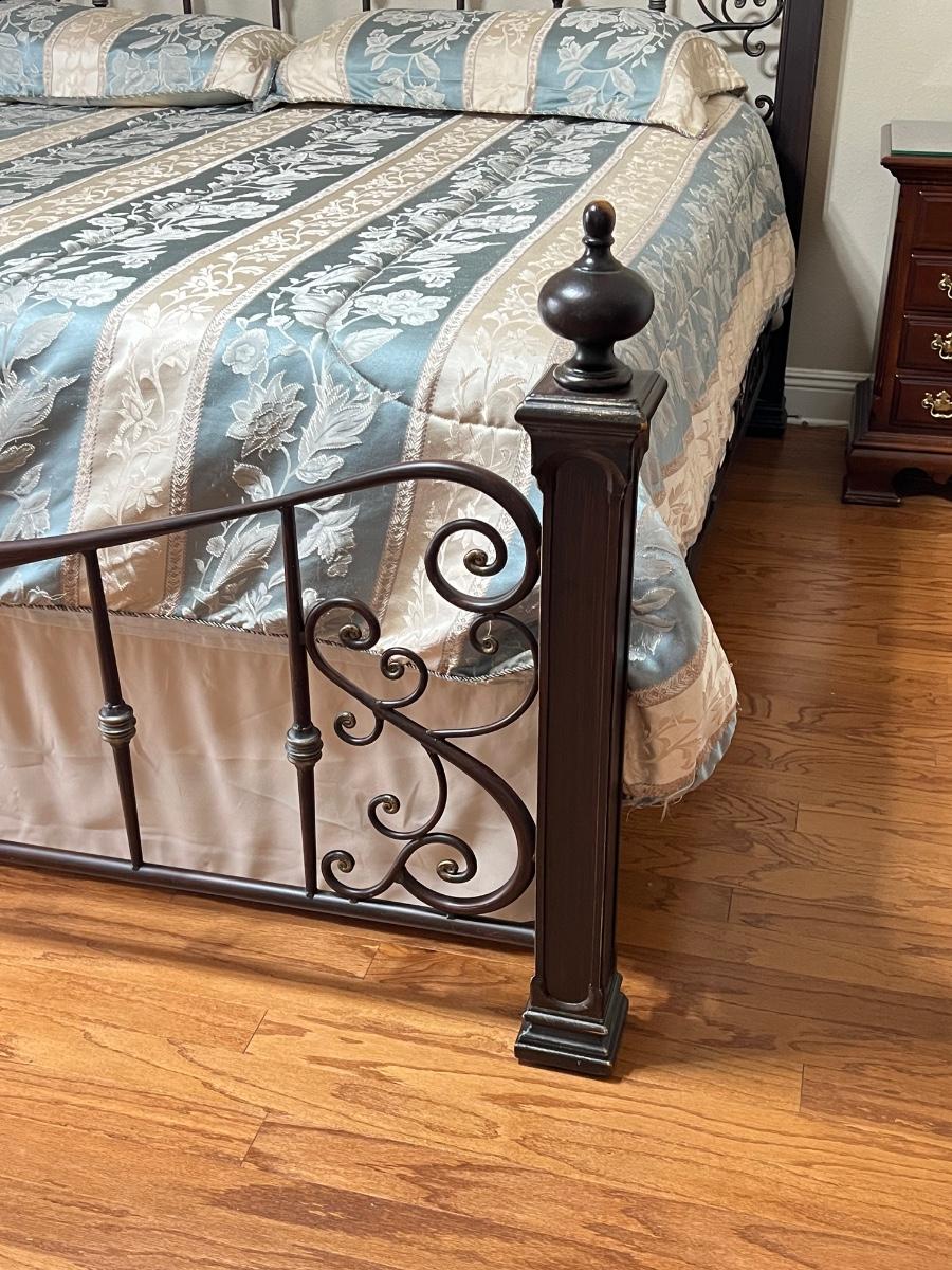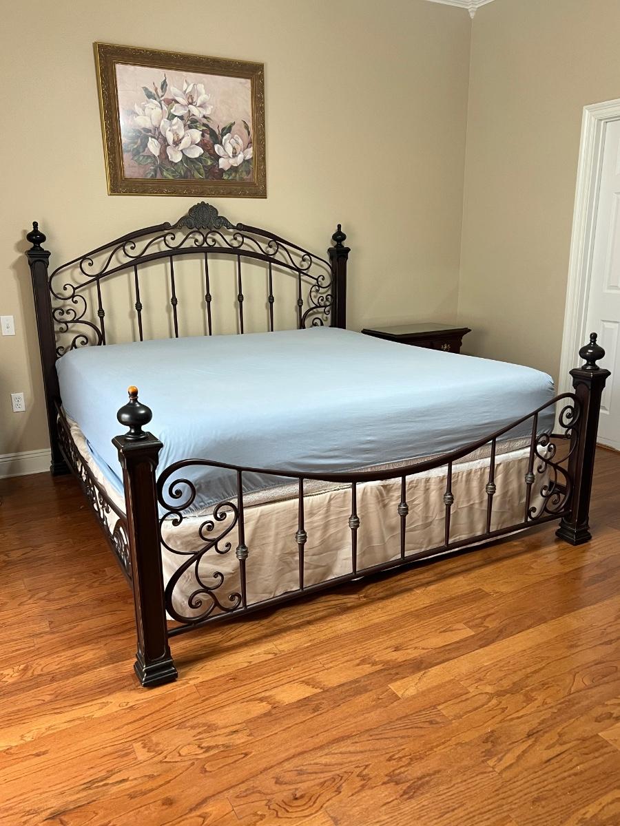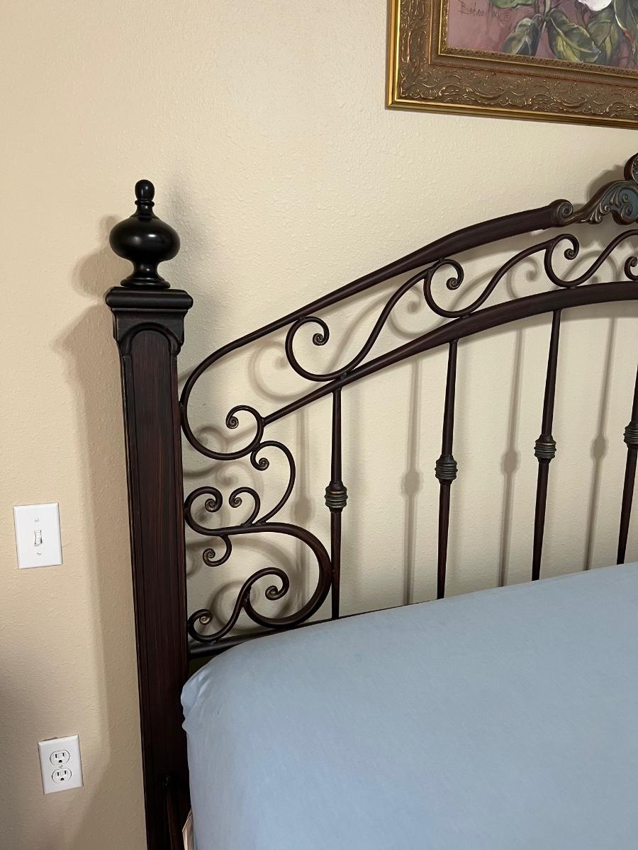 Mattress, box spring & bedding NOT included ~ Has minor wear from use, see photos ~ Headboard = 58” H