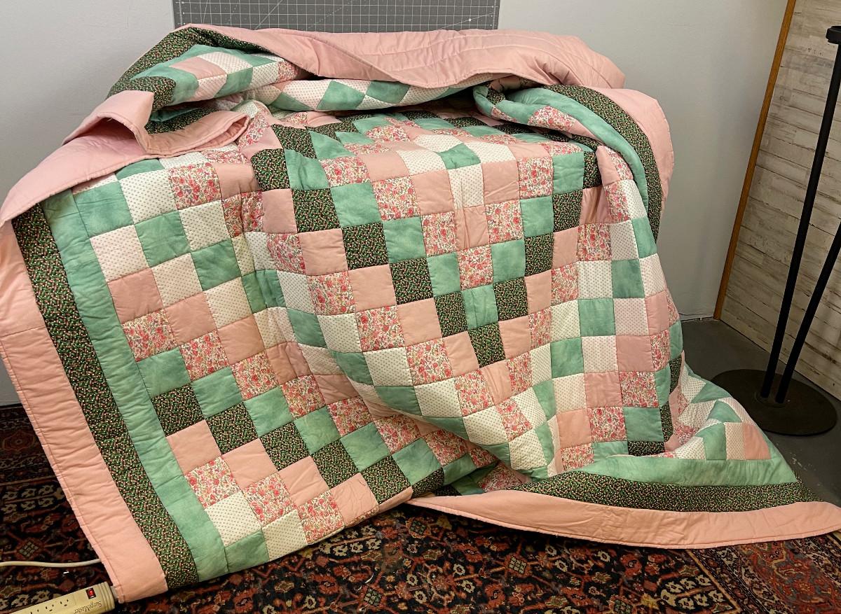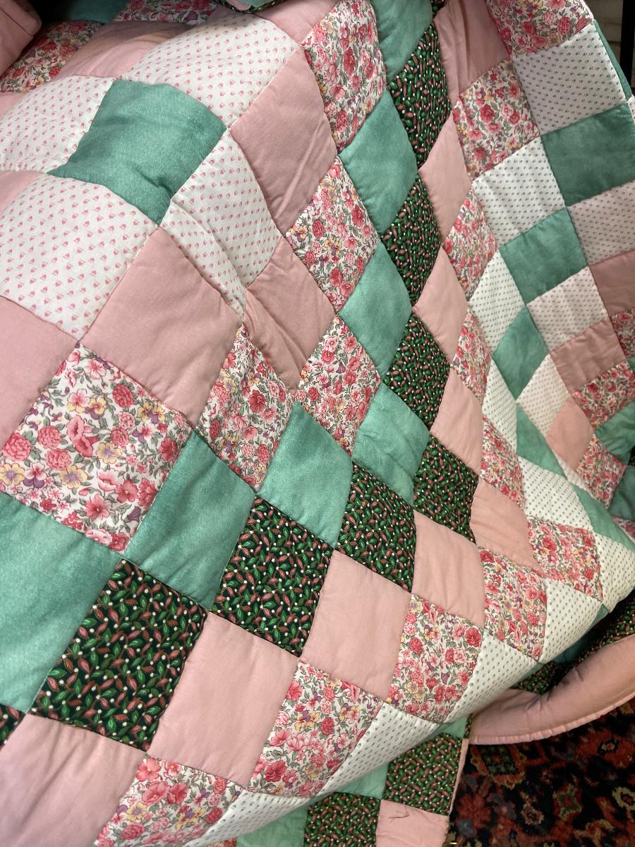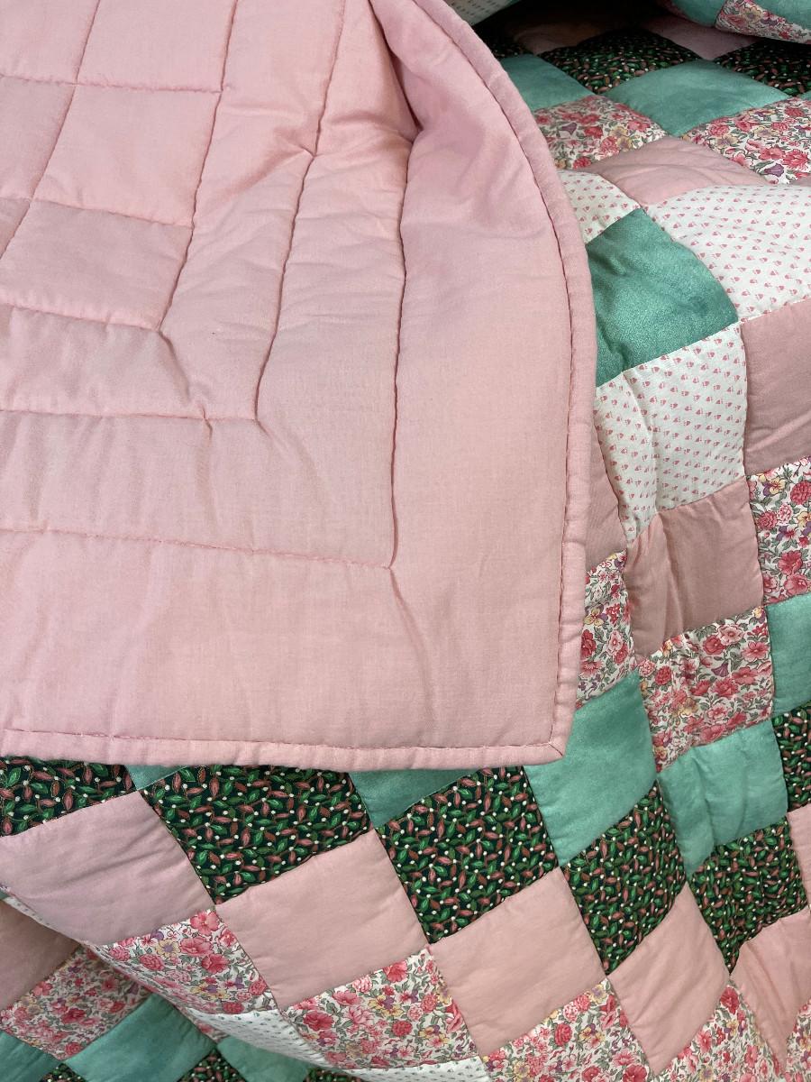 King Size Quilt, Pink& Green, hand crafted