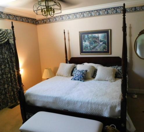 King Size Rice 4 Poster Mahogany Bed Frame by American Drew (Frame Only) on main level. must bring tools to break down.