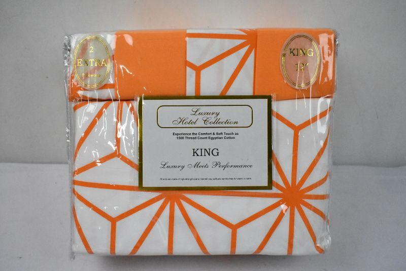 King Size Sheet Set, Orange & White Elegant Comfort Wrinkle Free Sheet Set 1500 Thread Count - New