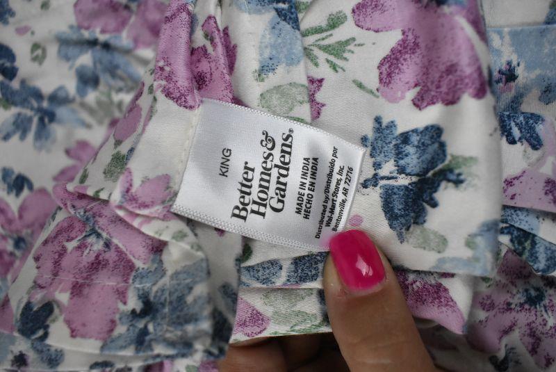 King Size Sheet Set, Pink/Blue Floral. Open Package
