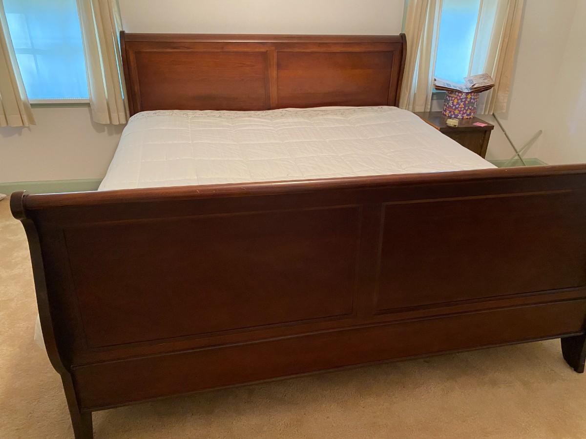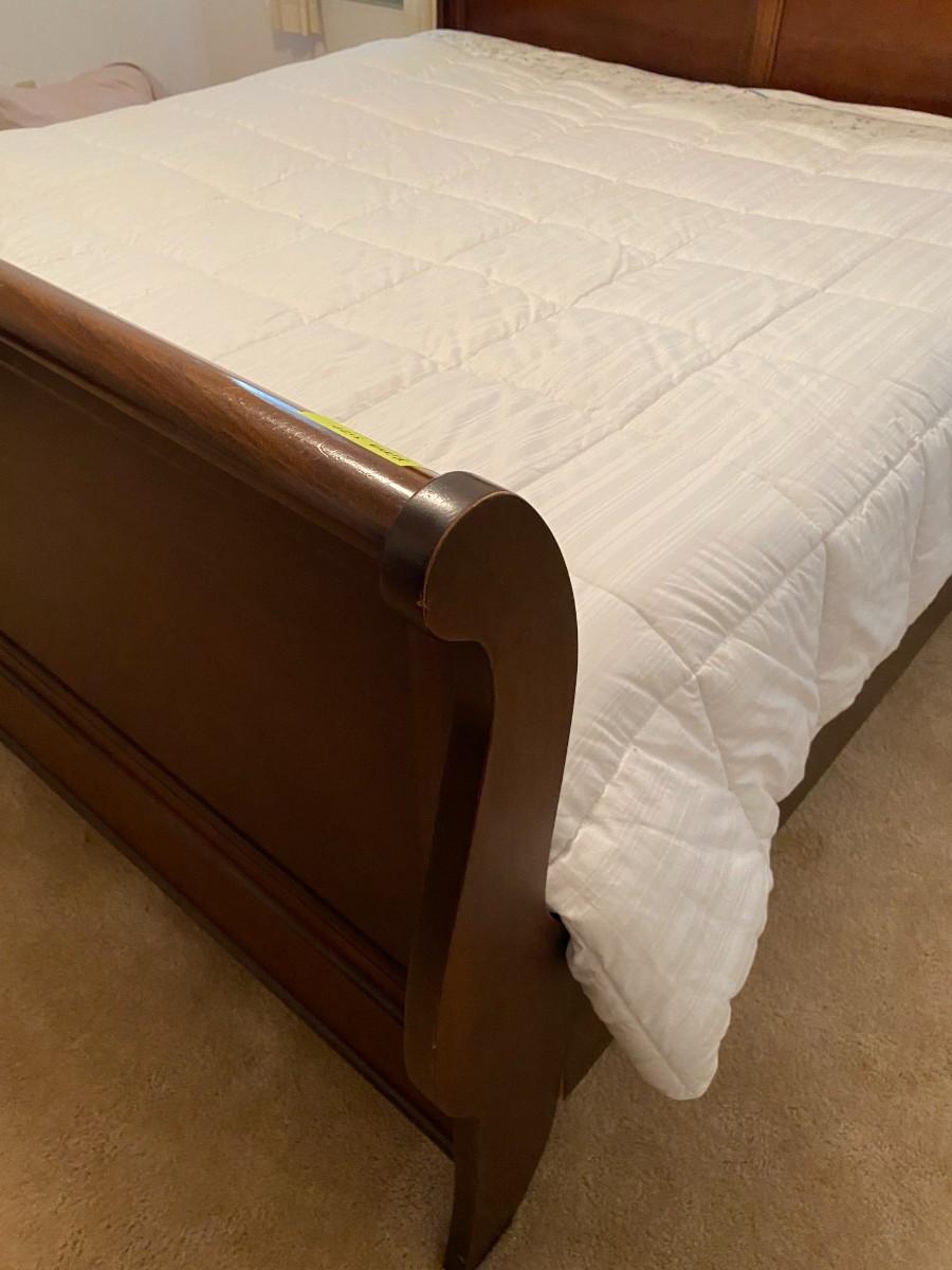 King Size Sleigh Bed w/ Wood Rails As Pictured