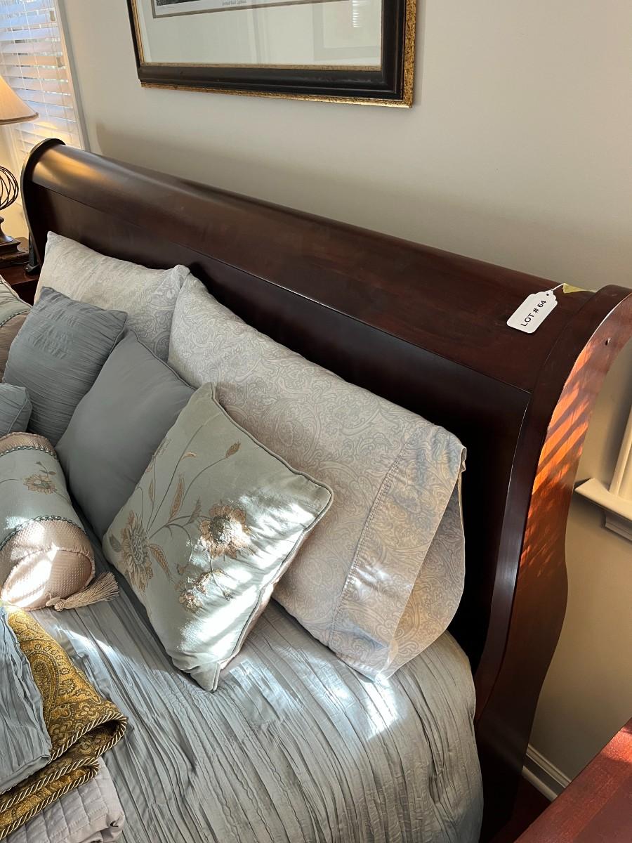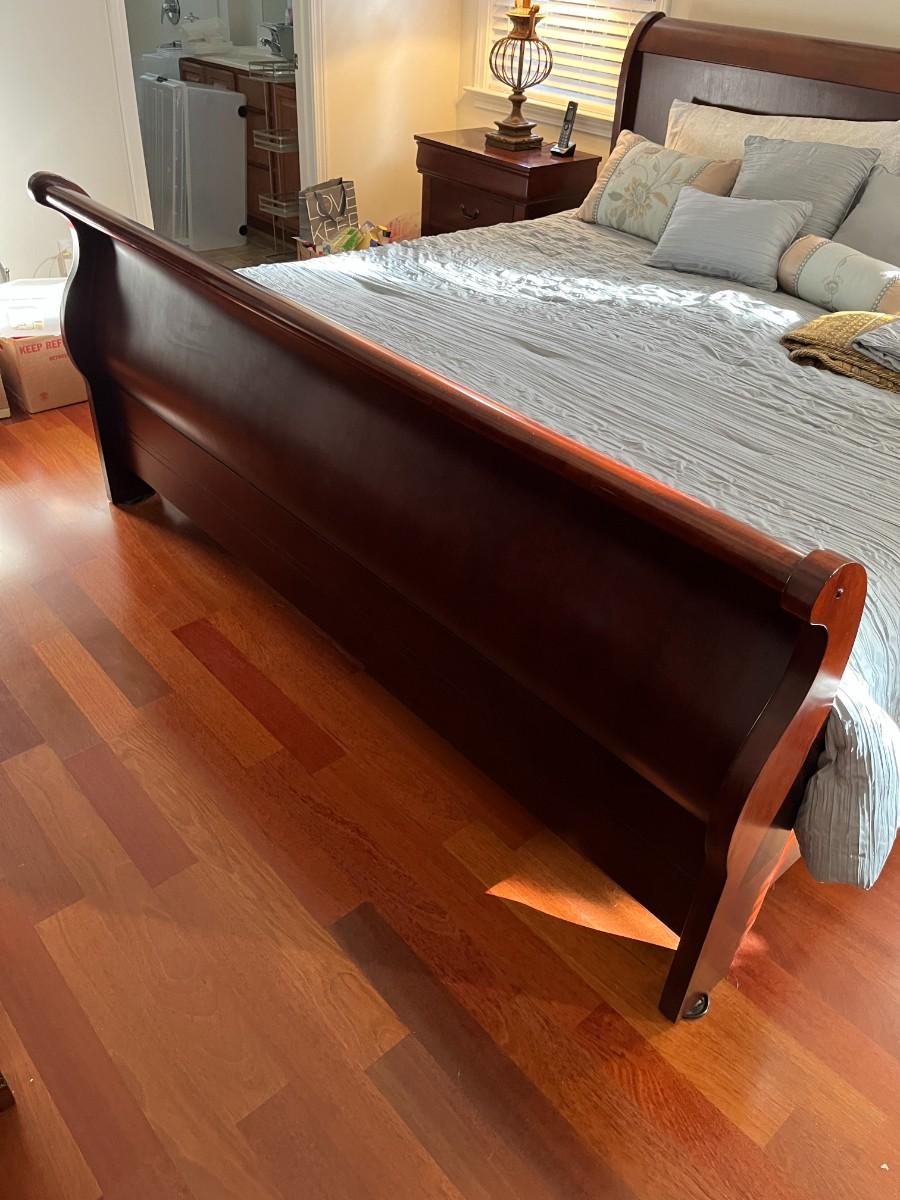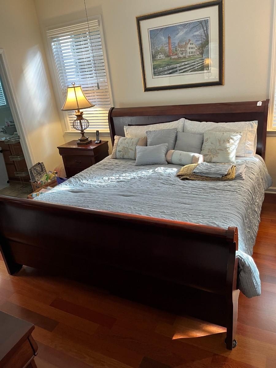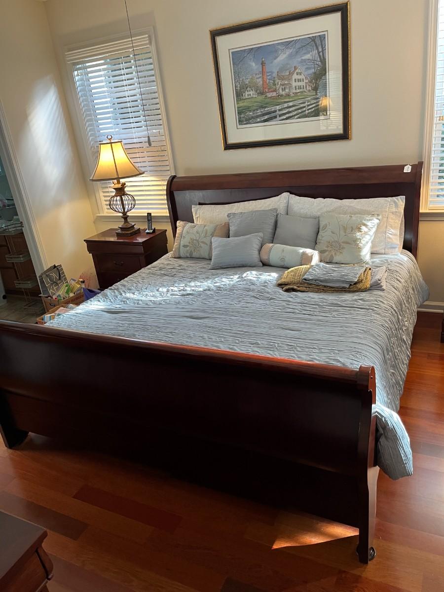 King Size Sleigh Bed. Winning bidder can have the mattress and box springs.
