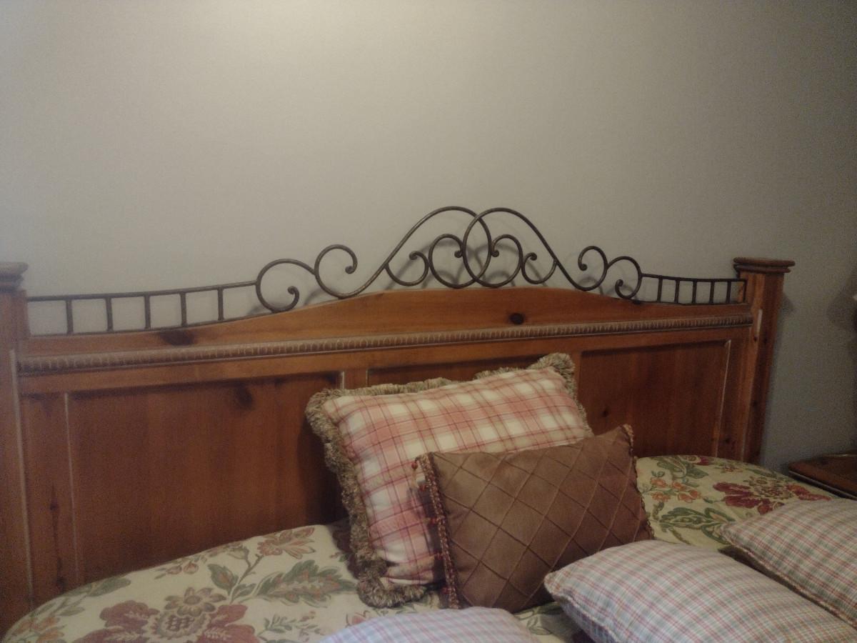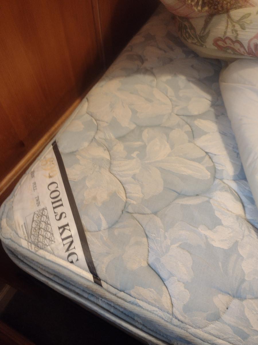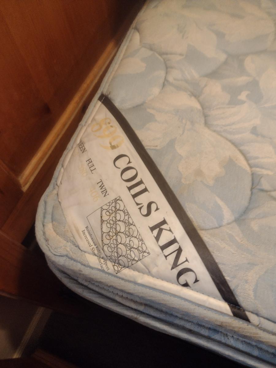 King Size Wood Frame Bed with Mattress. Bedding not included.